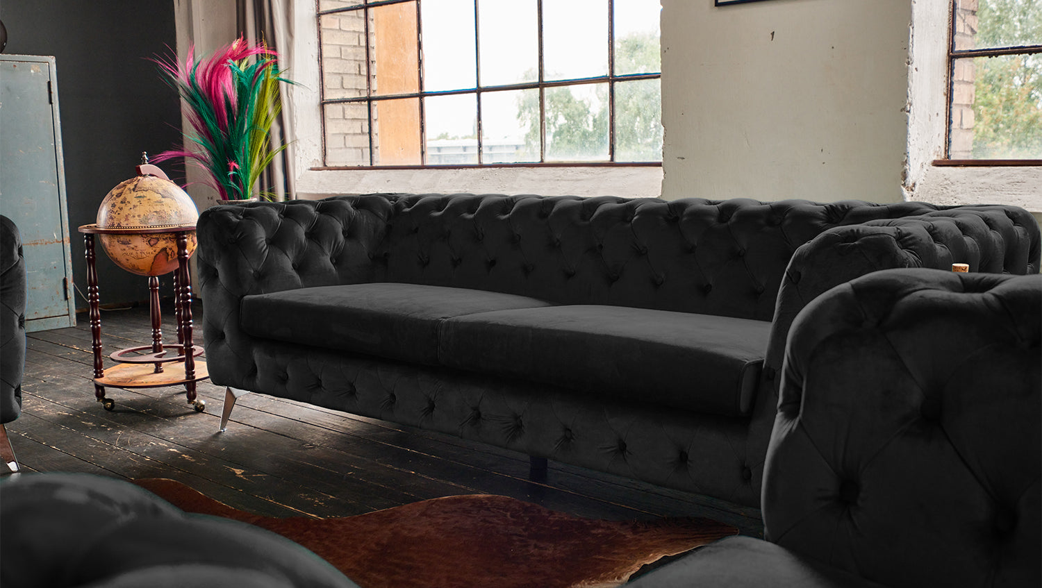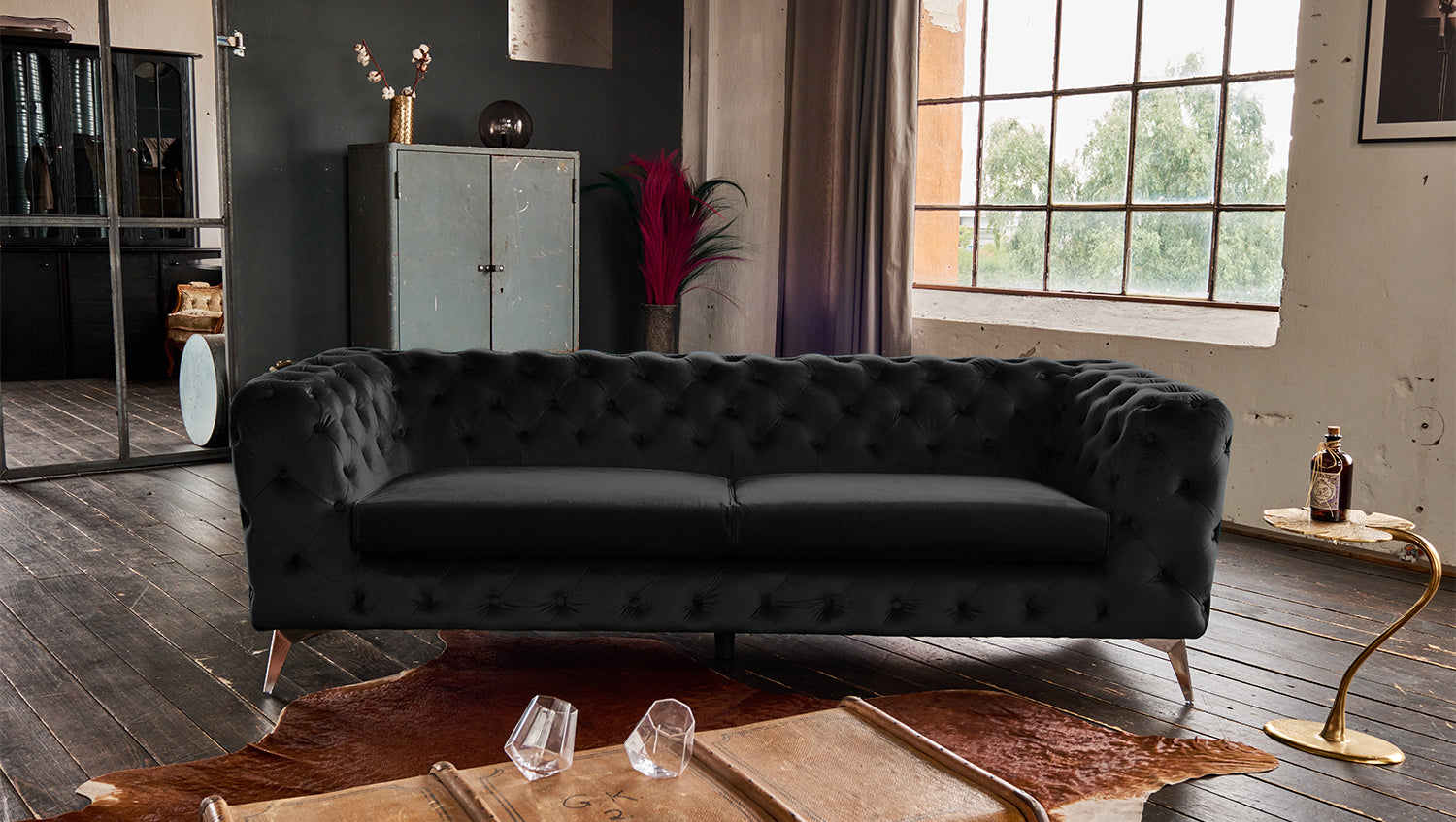 Sofá KAWOLA NARLA Chesterfield de 3 plazas de terciopelo negro