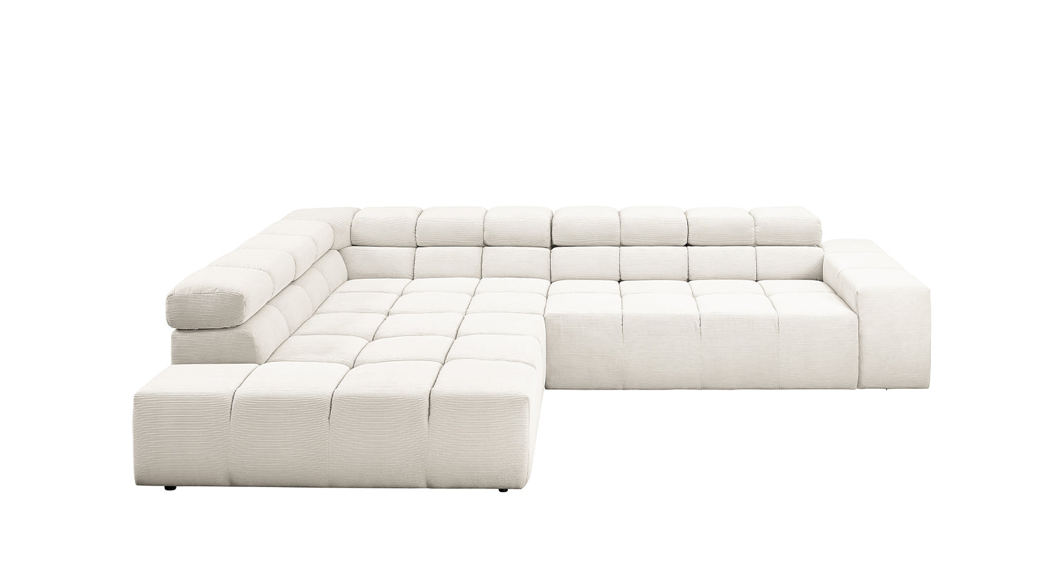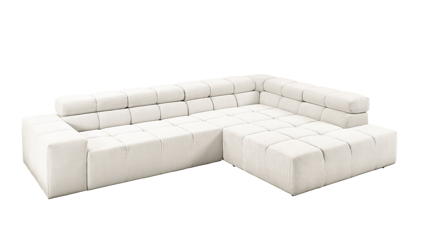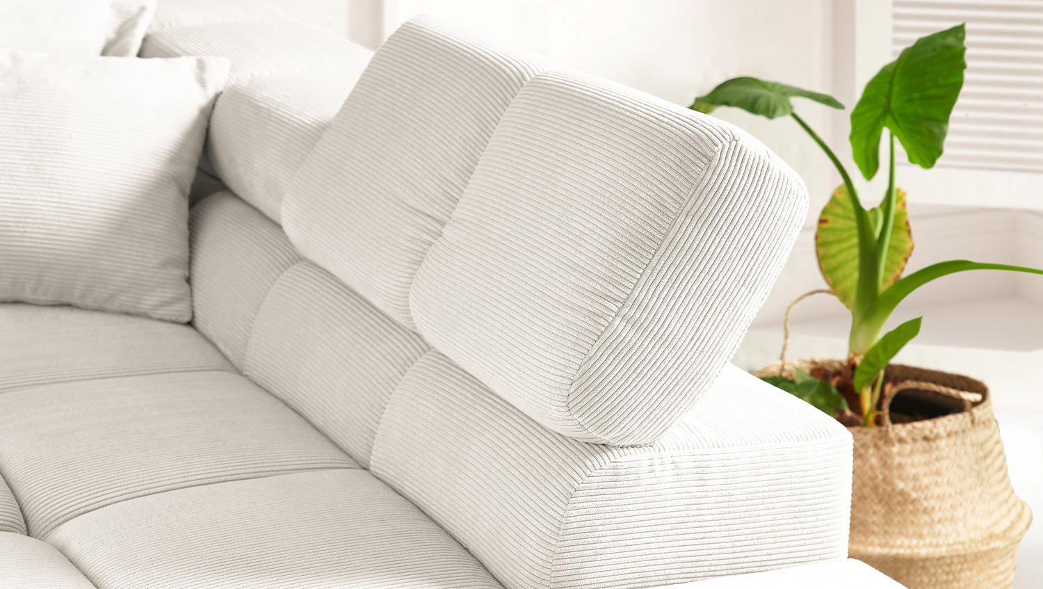 El sofá esquinero NEVADA de KAWOLA combina los mundos del diseño moderno con una elegancia atemporal y se integra a la perfección en cualquier interior. Su forma cúbica y sus discretos pies deslizantes confieren al sofá cierta ligereza, acentuada por el acolchado cuadrado. Los reposacabezas pueden abatirse hacia arriba o hacia abajo para adaptarse a las preferencias individuales. La compleja tapicería de tres niveles garantiza también el máximo confort. Naturalmente, el respaldo del sofá también está tapizado en la delicada Pana fina, de modo que el sofá también destaca cuando se coloca libremente en la habitación. Cualquiera que sea la ocasión, el sofá NEVADA es el lugar ideal para relajarse. Entrega sin decoración