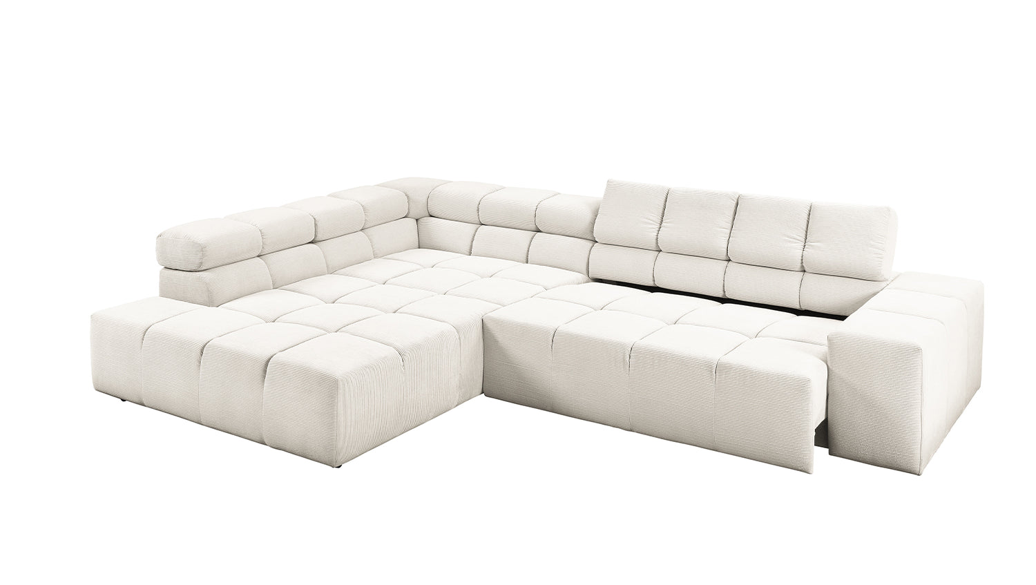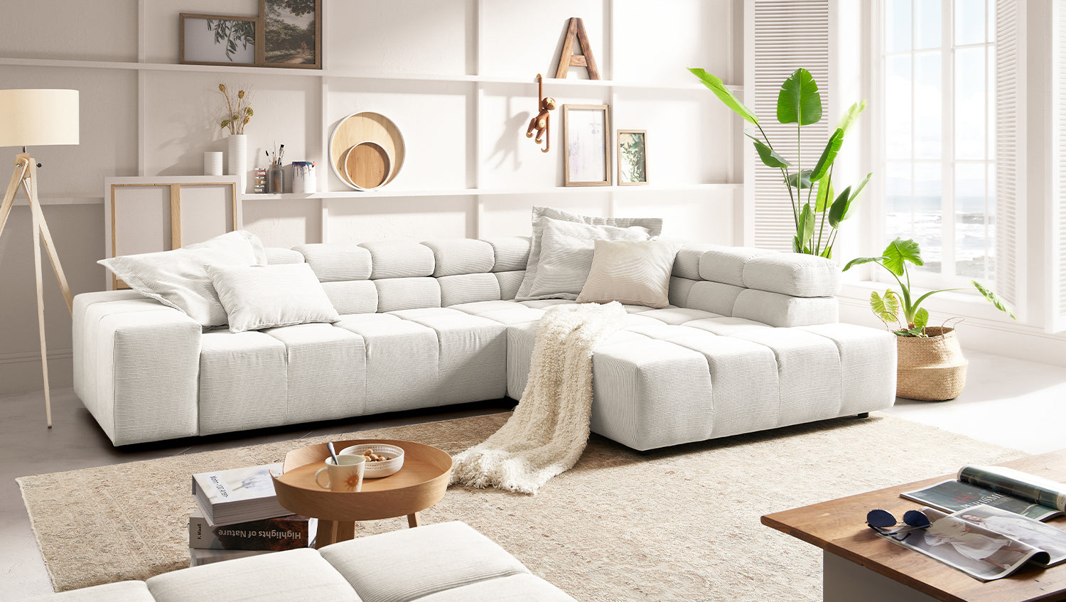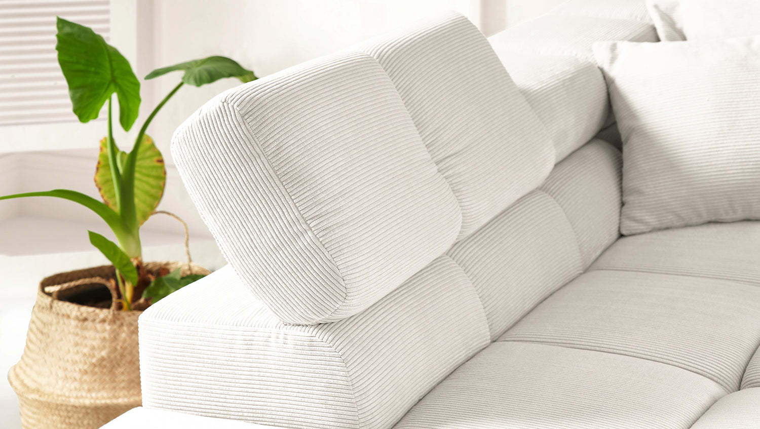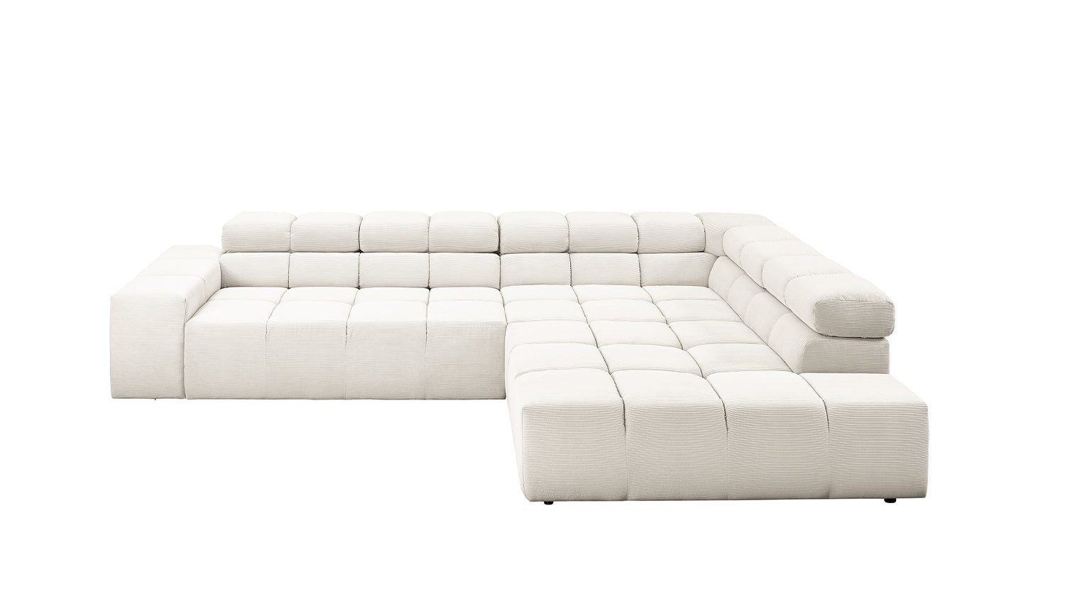 El sofá esquinero NEVADA de KAWOLA combina los mundos del diseño moderno con una elegancia atemporal y se integra a la perfección en cualquier interior. Su forma cúbica y sus discretos pies deslizantes confieren al sofá cierta ligereza, acentuada por el acolchado cuadrado. Los reposacabezas pueden abatirse hacia arriba o hacia abajo para adaptarse a las preferencias individuales. La compleja tapicería de tres niveles garantiza también el máximo confort. Naturalmente, el respaldo del sofá también está tapizado en la delicada Pana fina, de modo que el sofá también destaca cuando se coloca libremente en la habitación. Cualquiera que sea la ocasión, el sofá NEVADA es el lugar ideal para relajarse. Entrega sin decoración