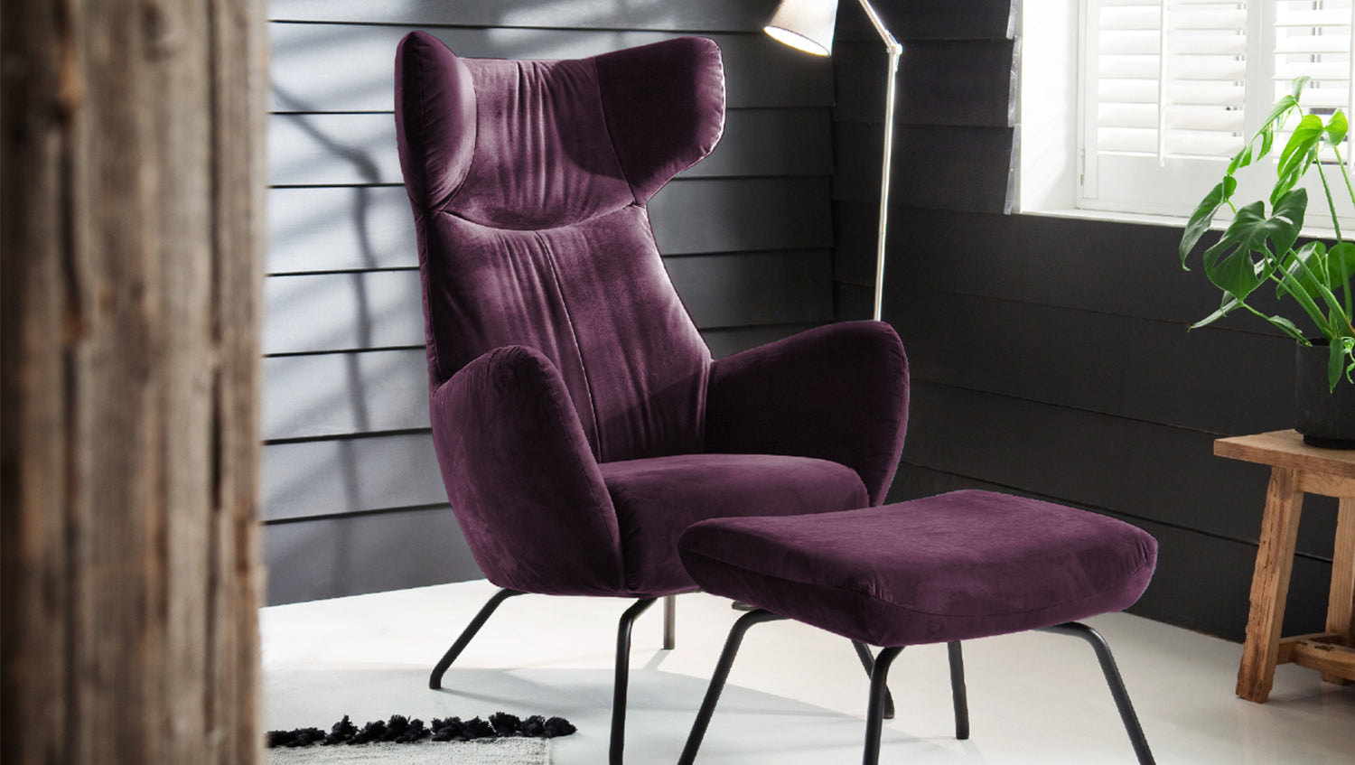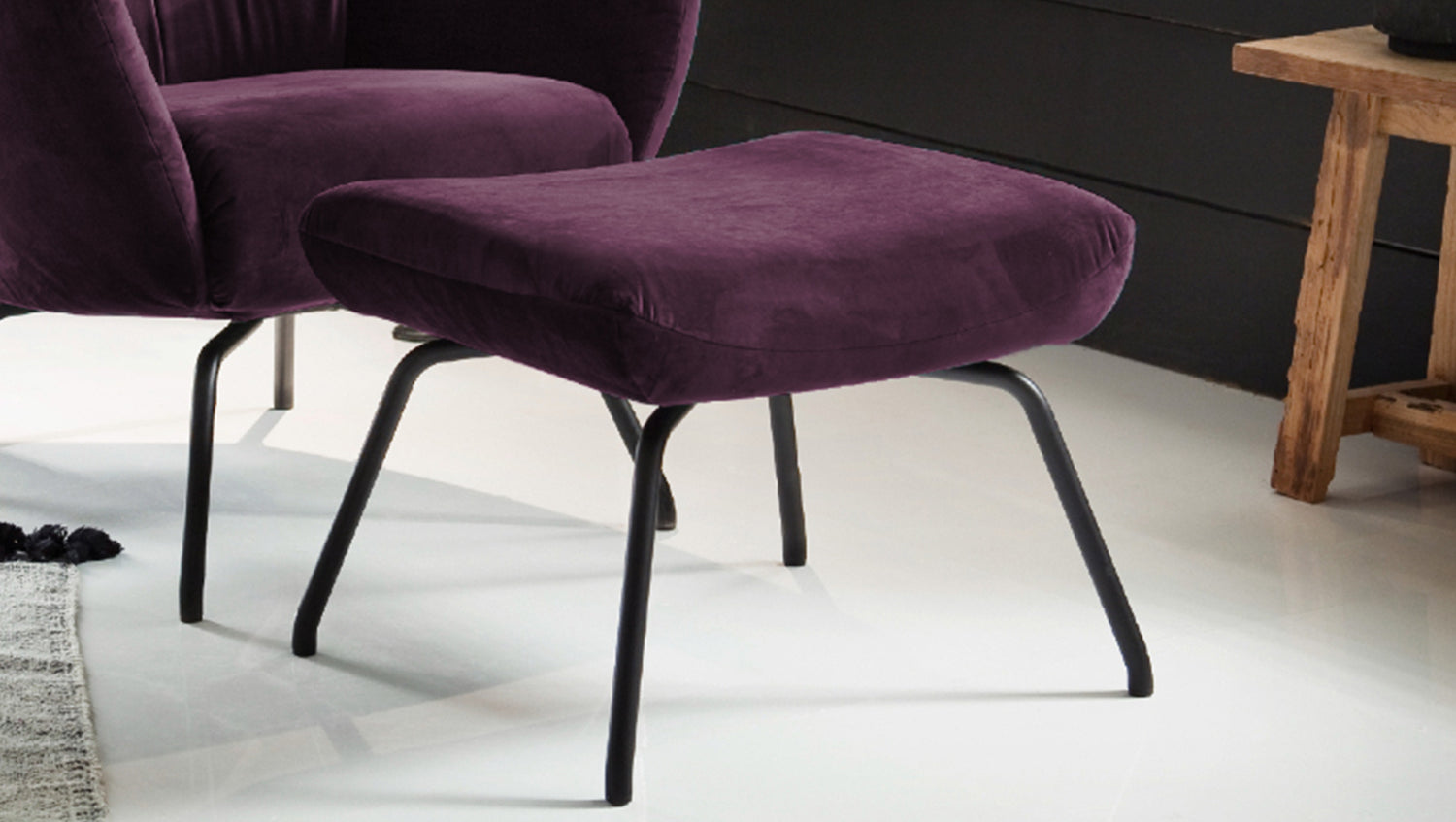 KAWOLA Puf LOTTE taburete tapizado terciopelo morado
