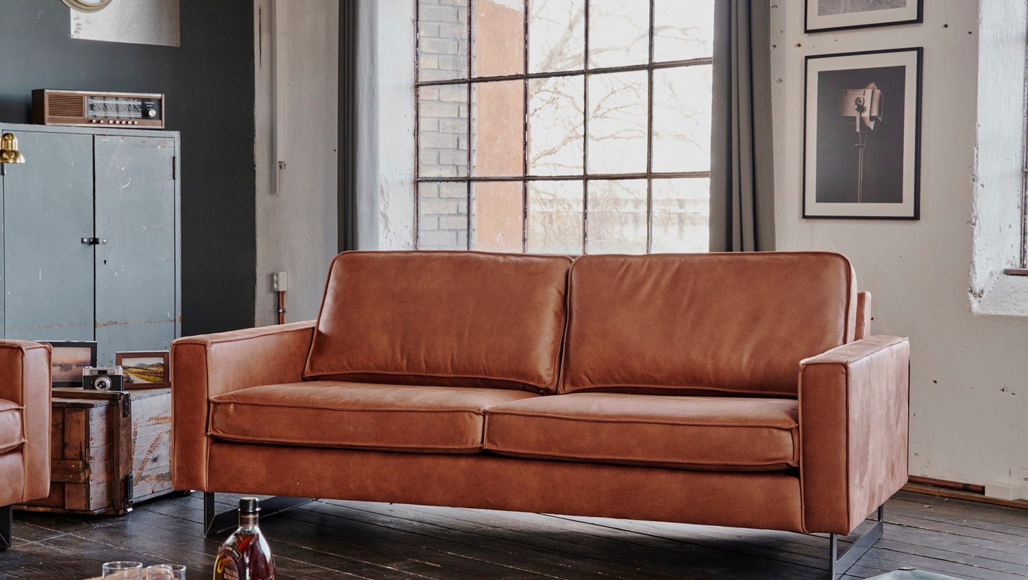 El sofá VILNIUS de KAWOLA ofrece todos los puntos fuertes de un sofá de piel clásico y mucho más. La funda de tejido de fibra de piel es una alternativa innovadora a la piel auténtica: está fabricada con fibras de piel recicladas que se combinan con aglutinantes naturales y fibras textiles. El resultado es un material resistente y de alta calidad con un aspecto de auténtica piel y un tacto agradablemente suave. El tejido de fibra de cuero es de fácil cuidado, dimensionalmente estable y transpirable, mientras que el sólido armazón de madera garantiza una robustez extrema y un tapizado cómodo y desenfadado para disfrutar de un asiento mullido. A pesar de sus grandes dimensiones, el sofá se puede colocar de forma flexible en cualquier habitación, convirtiéndolo en un punto de atracción visual en todo momento, mientras que los pies metálicos de aspecto industrial proporcionan un bello contraste con el cuerpo del sofá. En definitiva, el sofá KAWOLA VILNIUS creará un ambiente maravillosamente acogedor en cualquier ocasión.