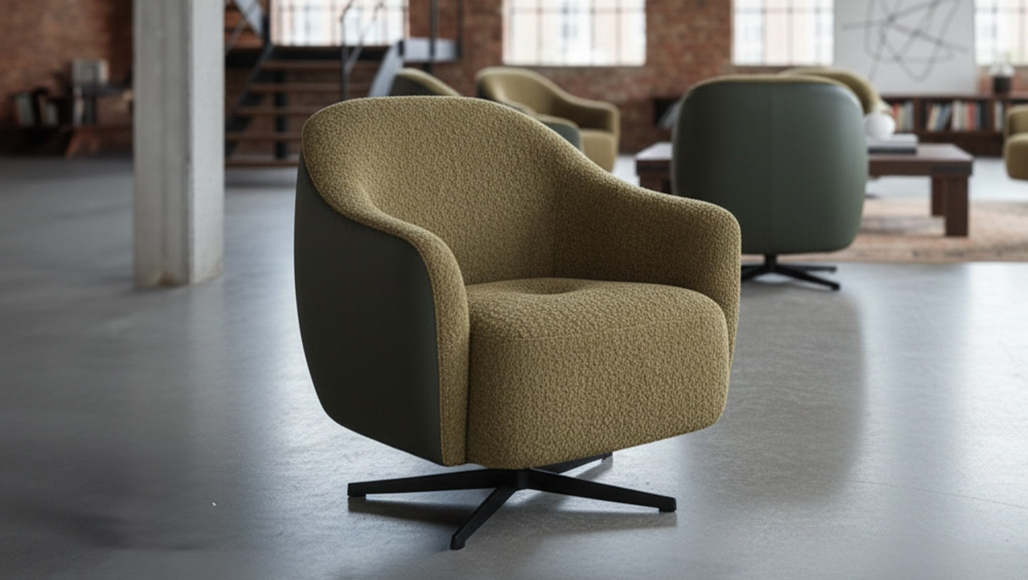 El sillón giratorio BRITTO de KAWOLA es una declaración de principios para la vida moderna: suave, confortable y elegantemente minimalista en su lenguaje de diseño. Con una combinación bien pensada de materiales y proporciones, BRITTO combina lo acogedor con la sofisticación del diseño - perfecto para interiores conscientes del estilo. La división de la tela en dos partes es lo que hace que este sillón sea tan atractivo: La parte delantera está tapizada en un tejido bouclé de alta calidad con una textura suave y viva que resulta agradable al tacto. Con una altura total de 85 cm y una anchura de 81 cm, BRITTO ofrece un asiento compacto pero generosamente acolchado. La altura del asiento de 44 cm y su profundidad de 55 cm garantizan una posición sentada cómoda y relajada, mientras que la altura del reposabrazos de 62 cm redondea a la perfección la comodidad del asiento. La función giratoria de 360° permite mover el sillón con flexibilidad en cualquier dirección: ideal para salones modernos, salas de estar o zonas de hotel. Su forma suavemente redondeada, las transiciones fluidas entre el asiento, el respaldo y los reposabrazos y la armoniosa coordinación de colores y materiales hacen que el BRITTO sea un verdadero punto de atracción y un lugar favorito para muchas horas de relajación.