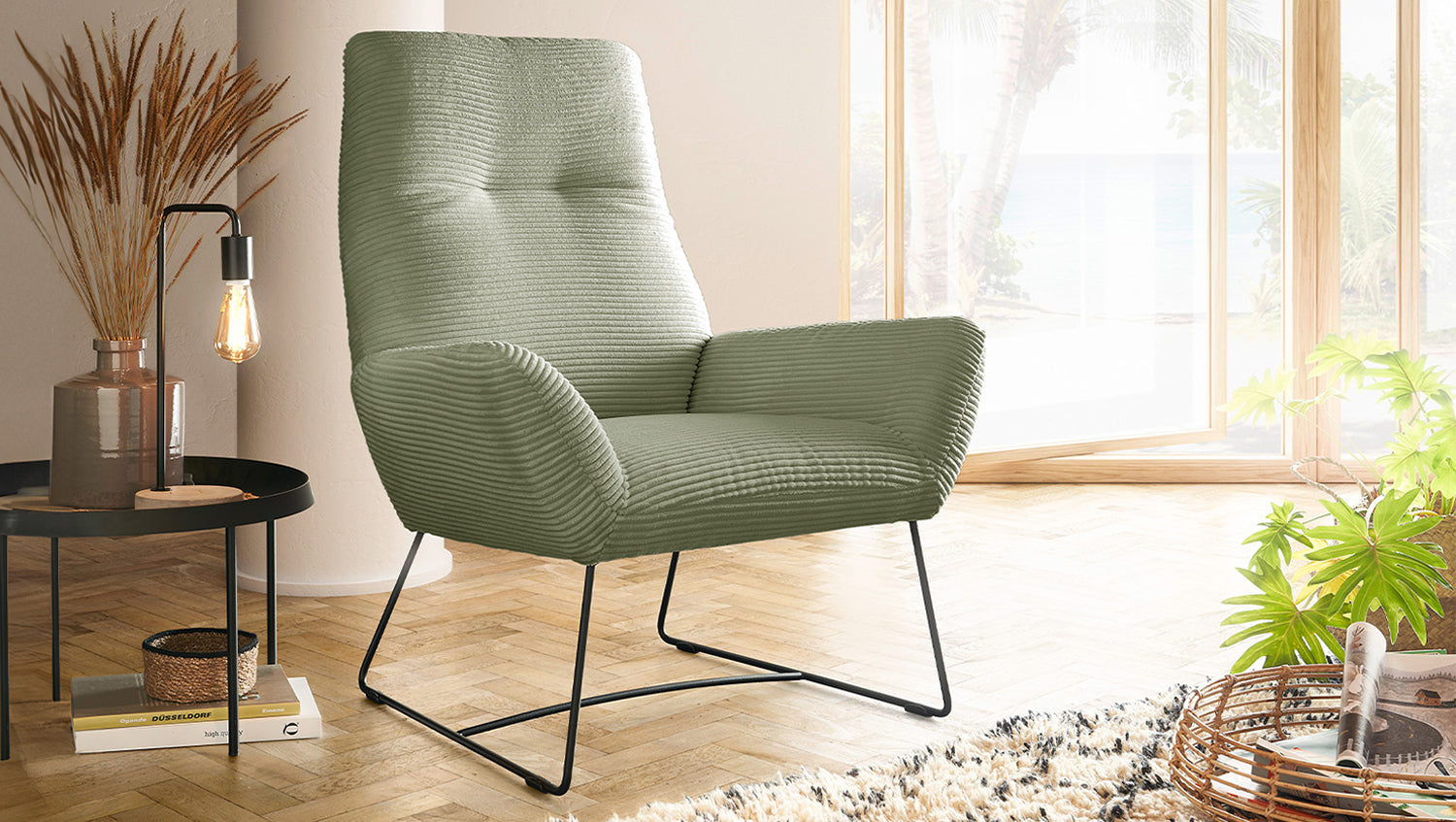 Sillón KAWOLA BISA Pana verde oliva
