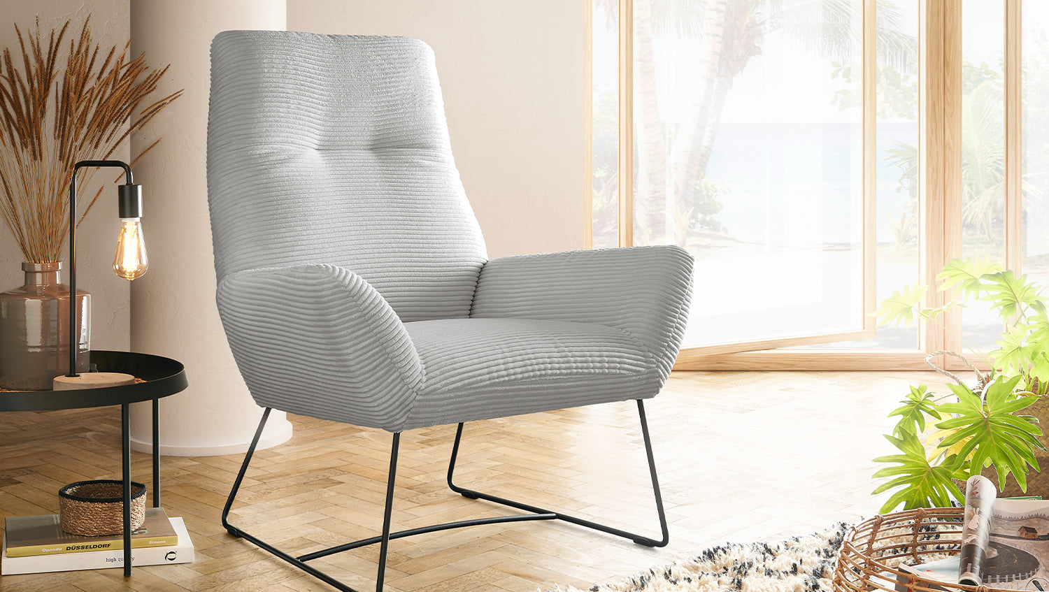 El hermoso sillón BISA de KAWOLA, fabricado en confortable pana, convertirá su salón en su nuevo lugar favorito. Este mueble tapizado tiene un acabado de alta calidad y encaja a la perfección en su hogar. Confort y calidad se unen en un look industrial. Las piezas portantes de la estructura son de madera maciza y el tapizado del respaldo de espuma PUR ergonómica le ofrece una comodidad de asiento óptima. Tanto si está leyendo un buen libro, disfrutando de una tarde relajante con amigos o viendo una película, el sillón BISA es siempre una buena elección.