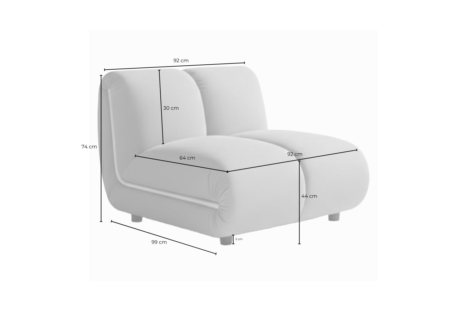 La funda de terciopelo de alta calidad le da al elemento de asiento un aspecto elegante y, al mismo tiempo, garantiza un tacto agradablemente suave. El acolchado suavemente redondeado y el amplio asiento ofrecen un gran confort, ideal para relajarse, leer o disfrutar de momentos de convivencia.