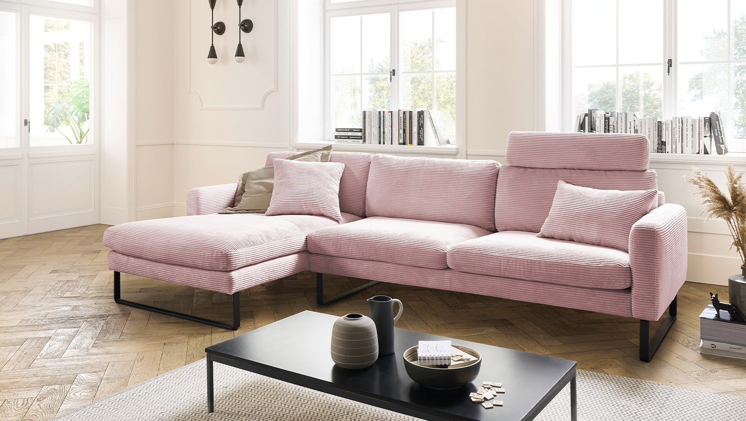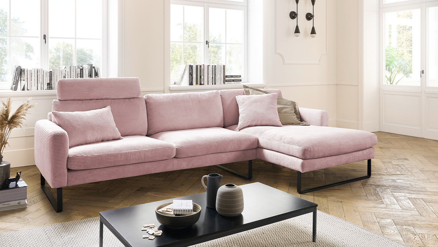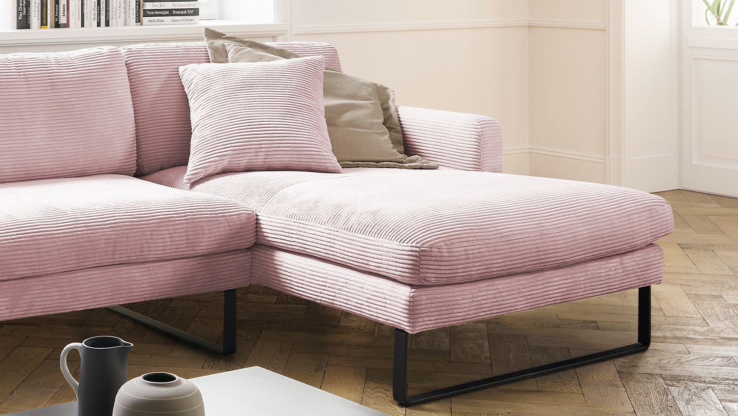 KAWOLA Sofá RICARDA Sofá esquinero Pana rosa