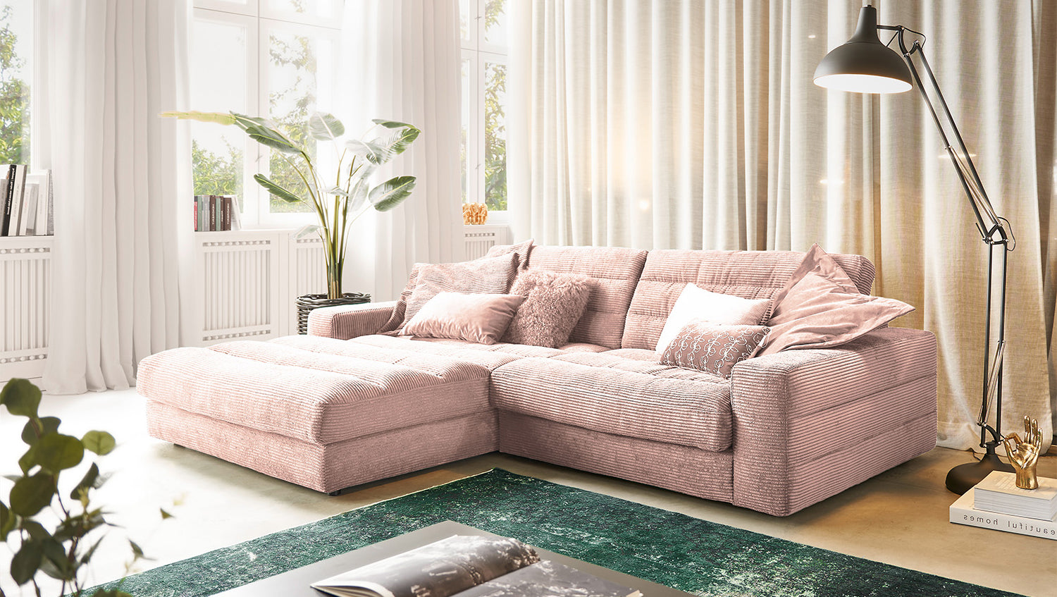 KAWOLA Sofá LANA Sofá esquinero Pana rosa