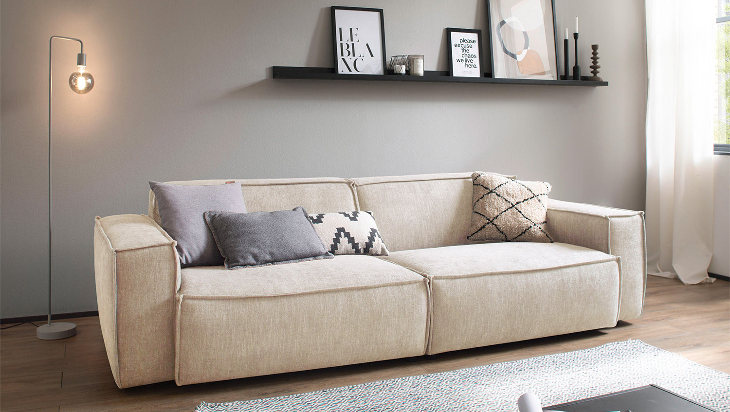 El grupo de asientos SAMU de KAWOLA está disponible aquí en una combinación de sofás de 2 y 3 plazas. Los sofás se caracterizan por su extraordinaria comodidad de asiento, que procede de la estructura extremadamente suave y desenfadada de la tapicería e invita a quedarse y relajarse. La tapicería se adapta a la forma del cuerpo; las impresiones del asiento y las ondulaciones de las fundas son típicas del producto. La forma moderna y urbana confiere a los sofás su aspecto inconfundible y ofrece espacio suficiente para pasar veladas acogedoras. Con su diseño atemporal, encajan a la perfección en cualquier ambiente y también destacan de pie en la habitación. Si quiere dar un toque extraordinario a su salón, el grupo de asientos SAMU es sin duda la elección adecuada.