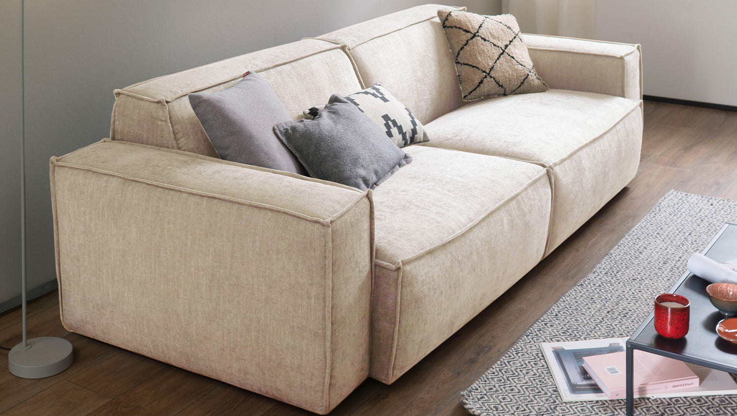 KAWOLA Grupo de asientos SAMU 3 plazas 2 plazas tejido chenilla beige