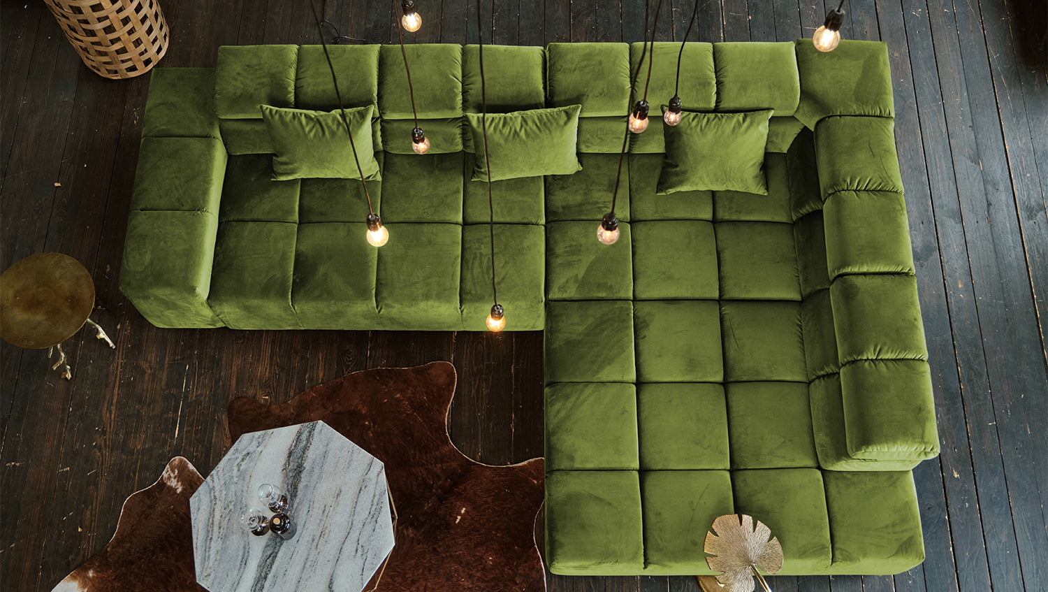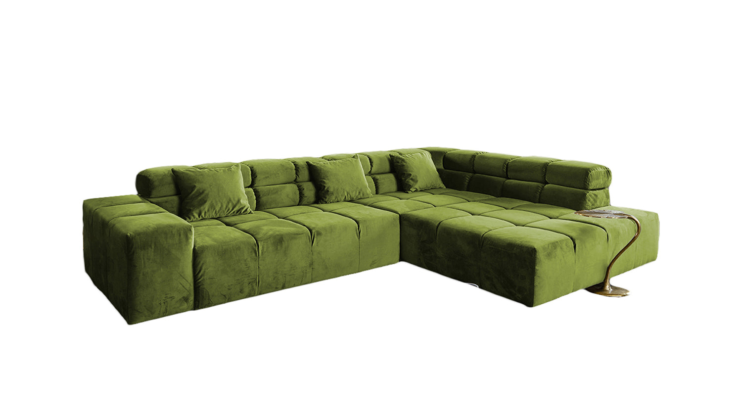 2a oportunidad KAWOLA Sofá NEVADA Sofá de esquina Terciopelo verde Recamiere derecha