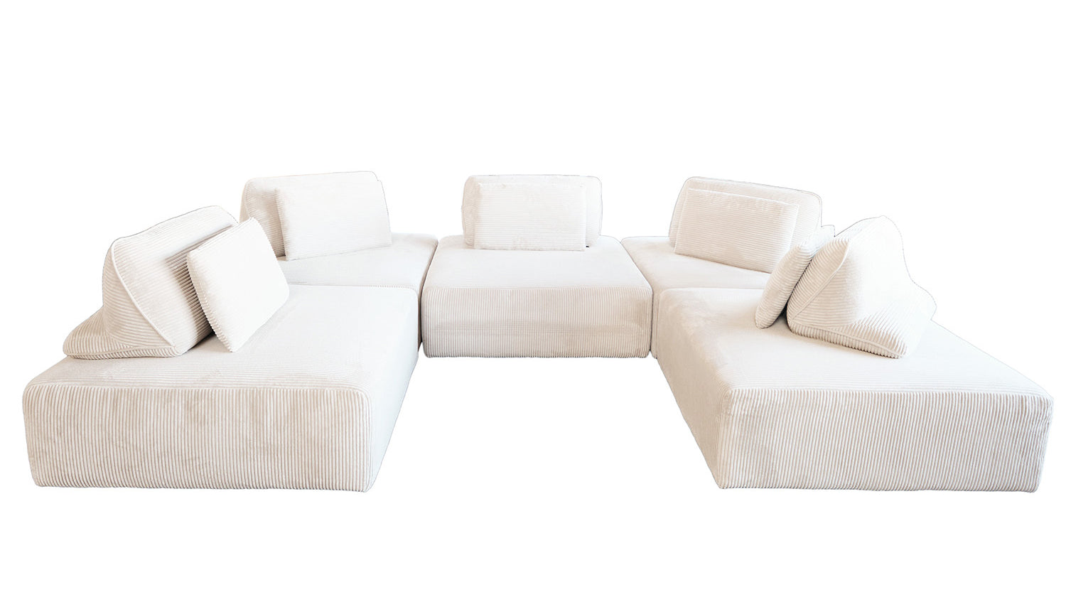 KAWOLA sofá modular WIOLO SOFT 5 módulos 5 Cojines respaldo Pana crema blanco