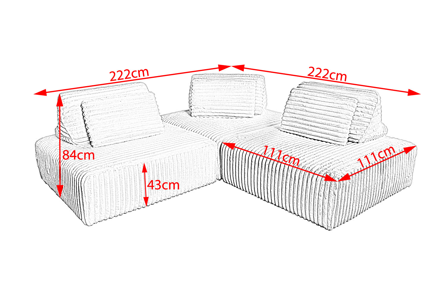 El sofá modular WIOLO SOFT de estilo escandinavo es la nueva estrella en el cielo de KAWOLA - ¡y tan único como tu hogar! La serie WIOLO SOFT es una actualización de nuestro bestseller WIOLO y se caracteriza por un acolchado mucho más suave que garantiza la máxima comodidad de asiento. La funda de alta calidad de tejido de cuerda ancha especialmente suave también es desenfundable y lavable. Se han elegido deslizadores para los pies, que dan la impresión de que el sofá está suspendido justo encima del suelo. También se incluyen tres Cojines respaldo, que actúan como respaldos tan estables como cómodos. Personalice su sofá según sus necesidades... ¡y no al revés! Puede adaptar el sofá modular WIOLO SOFT a sus necesidades individuales, día tras día. Con tres elementos de asiento, tres Cojines respaldo y tres Cojines decorativos, podrá dar rienda suelta a su creatividad: Sencillo sofá de 3 plazas, acogedor rincón tapizado o grupo de asientos con 2 plazas y Puf: ¡con WIOLO SOFT de KAWOLA hará realidad sus sueños vitales! Pero también puede ver su sofá modular WIOLO SOFT como un punto de partida. Con el elemento de asiento y los Cojines respaldo, puede ampliar su nuevo sofá favorito como desee: Su imaginación no tiene límites. ¡Diviértase navegando!