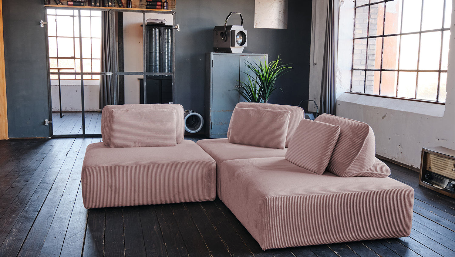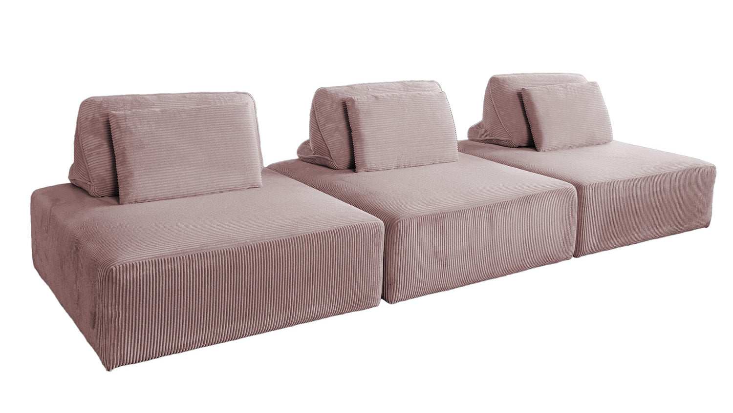 KAWOLA sofá modular WIOLO SOFT 3 módulos 3 Cojines respaldo Pana rosa