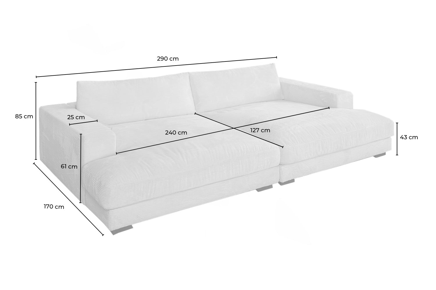 El Sofá extra ancho MADELINE de KAWOLA impresiona por su extraordinaria comodidad de asiento, que se consigue gracias a su tapizado extremadamente desenfadado y que invita a quedarse y relajarse. Sus inusuales dimensiones y su forma moderna y urbana confieren al sofá un aspecto inconfundible y ofrecen mucho espacio para pasar veladas acogedoras. Con su diseño atemporal, se integra a la perfección en cualquier ambiente y, además, destaca en cualquier rincón de la habitación. Si quiere dar a su salón un toque extraordinario, el Sofá extra ancho MADELINE es sin duda la elección correcta.