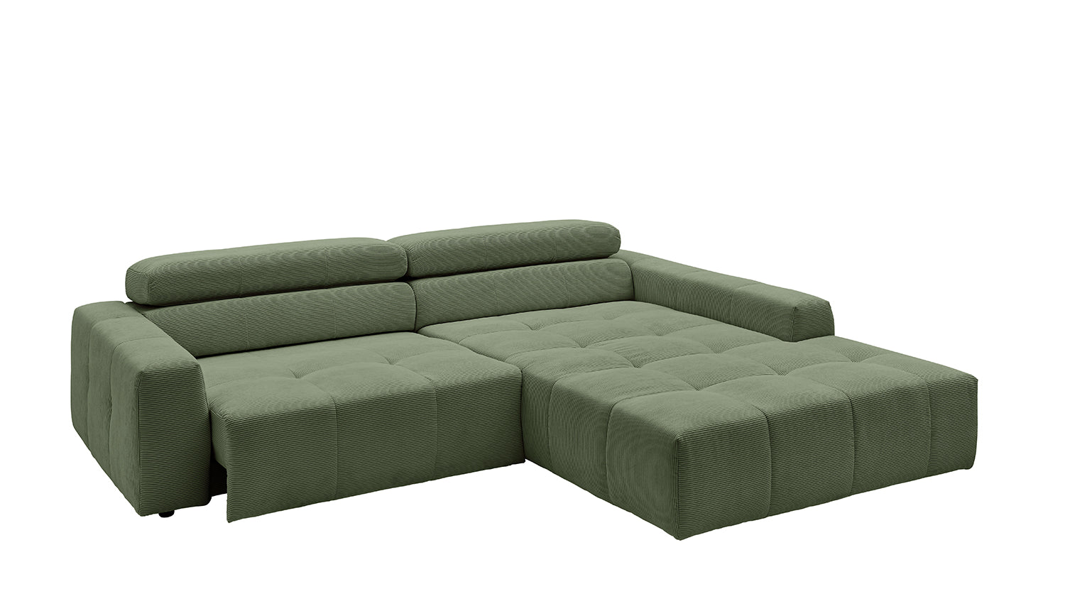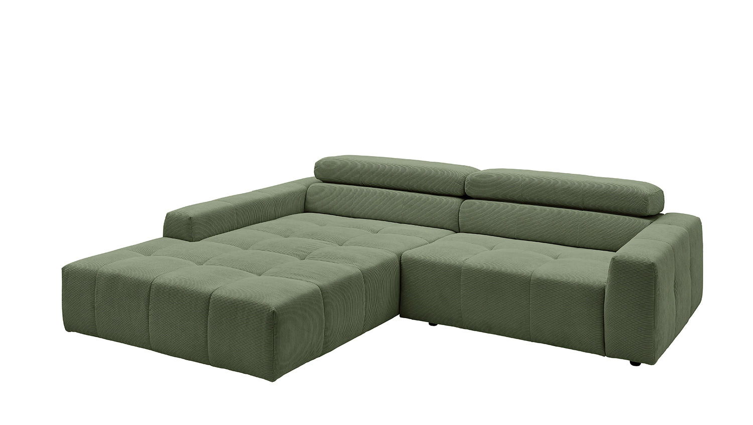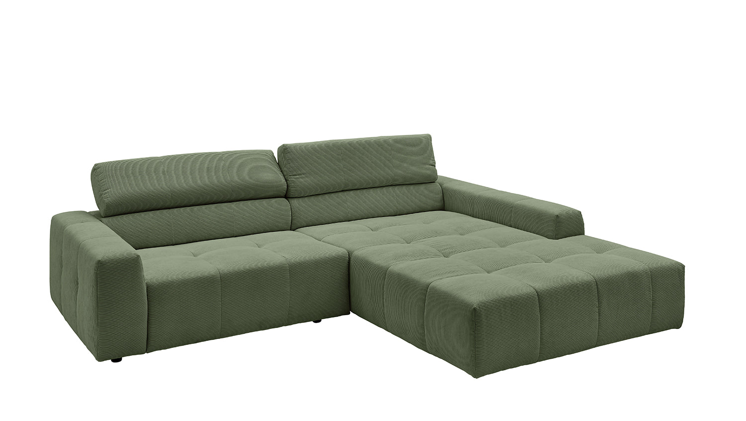 Descubra el elegante sofá esquinero RENO de KAWOLA, que impresiona por su funda de pana de alta calidad y el sofisticado ajuste del reposacabezas. La funda integral de pana de primera calidad confiere a este sofá esquinero un encanto atemporal y un tacto agradable. El respaldo ergonómico de espuma proporciona un confort adicional, mientras que la suspensión de muelles ondulados y la espuma PUR de la zona de asiento garantizan una agradable experiencia al sentarse. El innovador ajuste de los reposacabezas le permite inclinarlos individualmente o ponerlos en posición vertical para encontrar su posición de relajación personal. Con un confort de asiento de firmeza media, el sofá esquinero RENO ofrece la combinación perfecta de estilo y comodidad. Experimente la relajación pura en su salón con este cómodo y atractivo mueble. Entrega sin cojines ni decoración