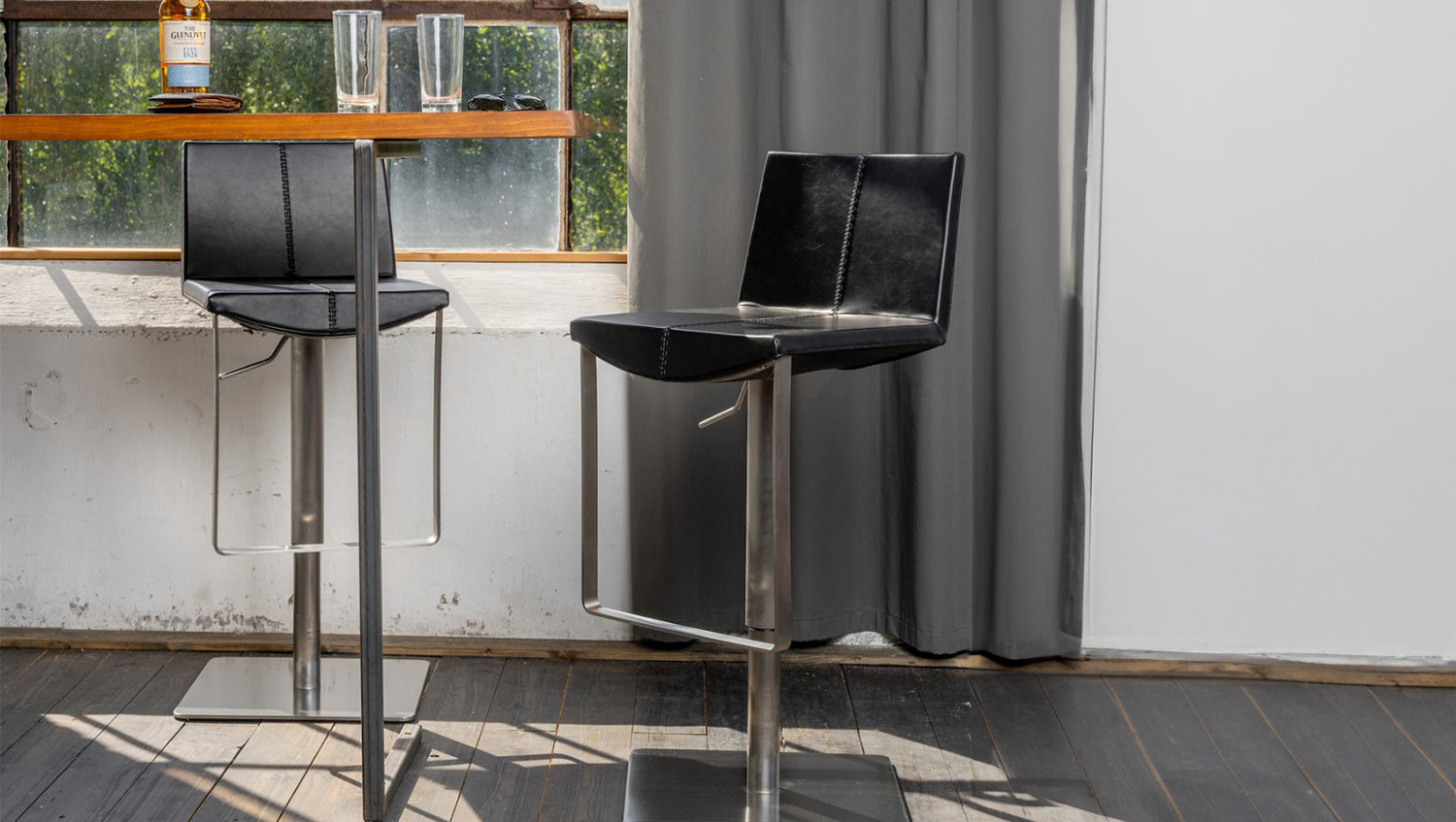 KAWOLA taburete de bar FES taburete de bar regulable en altura giratorio negro