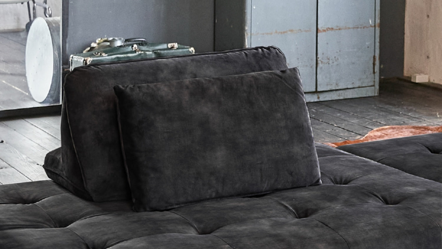 Con su combinación de respaldo y cojines, los Cojines respaldo KAWOLA WIOLO garantizan un agradable confort de asiento. La elegante funda de terciopelo en el moderno color antracita completa su atractivo diseño. El Cojines respaldo WIOLO es el complemento ideal para los sofás y Pufs de la gama WIOLO y completa con estilo el mobiliario de su salón.