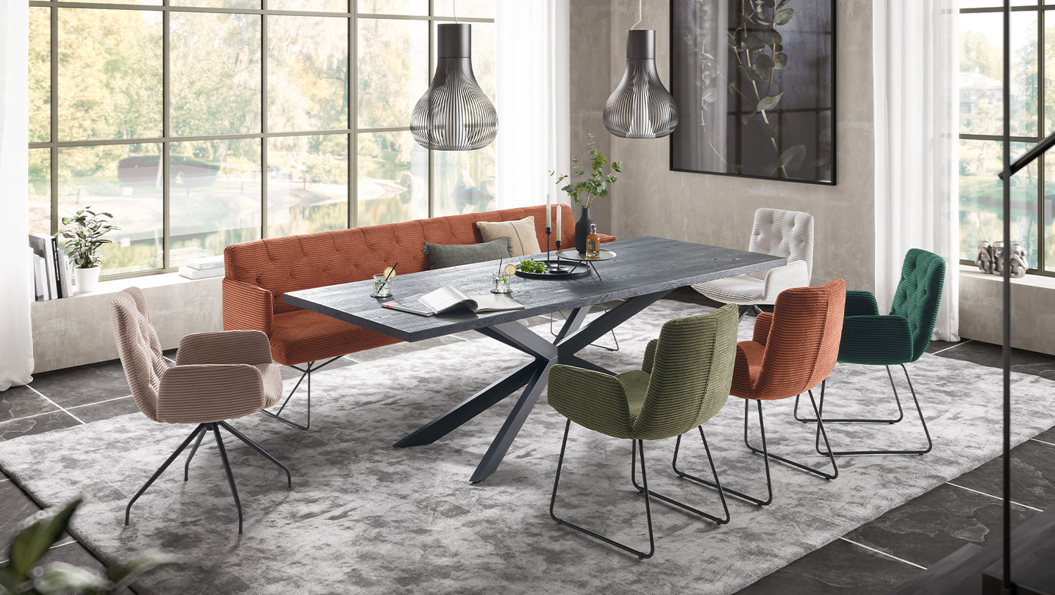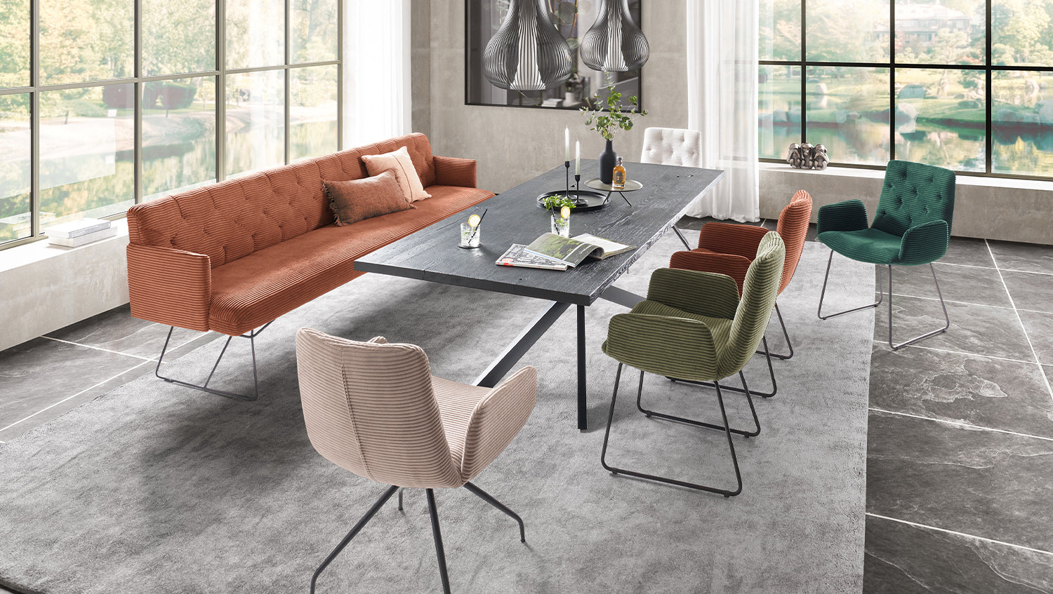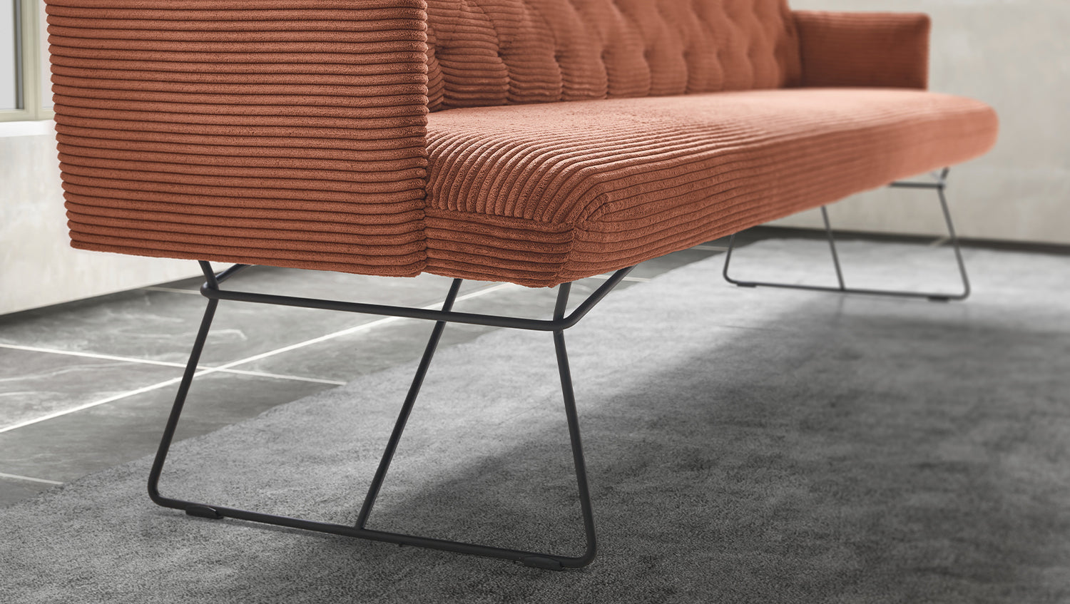 El banco de comedor KAWOLA CHARME aporta un aire vintage a cualquier habitación. Gracias a su diseño minimalista, el cómodo Banco tapizado se adapta a cualquier hogar e invita a pasar las tardes jugando con los amigos o la familia. El banco se caracteriza por su tapizado desenfadado y el elevado confort de asiento que conlleva. La estructura desenfadada del asiento es típica del modelo y el diseño ondulado acentúa el factor acogedor del banco. El acogedor tapizado se acentúa aún más con la suave funda de tela de pana de moda, que hace que la sensación del banco sea acogedora y cómoda. Como el banco de comedor CHARME está revestido totalmente de tela, también se puede colocar en cualquier lugar de la habitación. El Banco tapizado encaja perfectamente en su hogar gracias a sus pies de alambre y a su elegante tapizado de pana. El banco tiene capacidad para cuatro personas que pueden disfrutar de una comodidad de asiento sin restricciones.