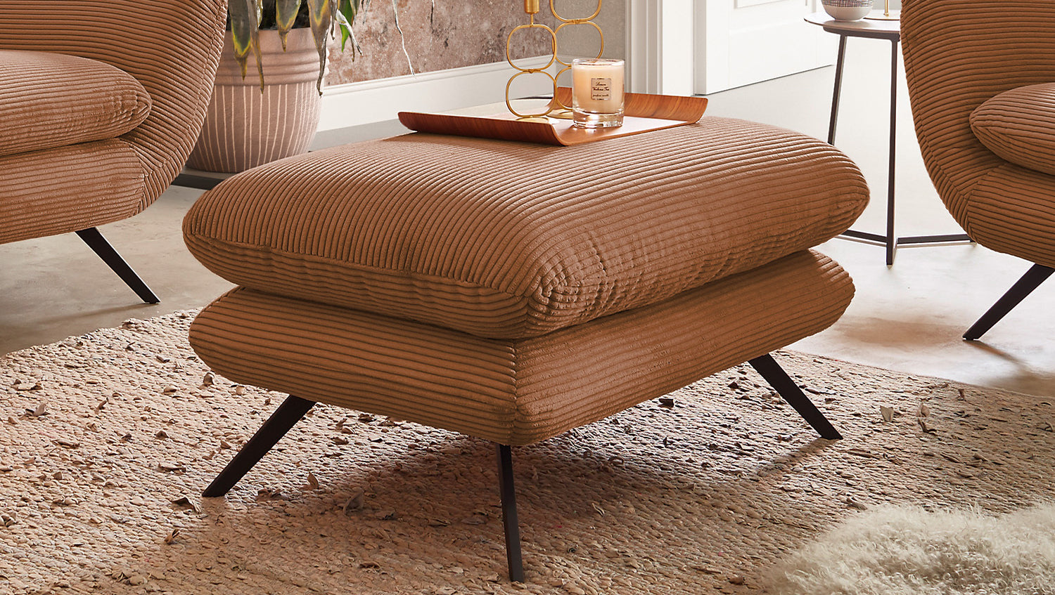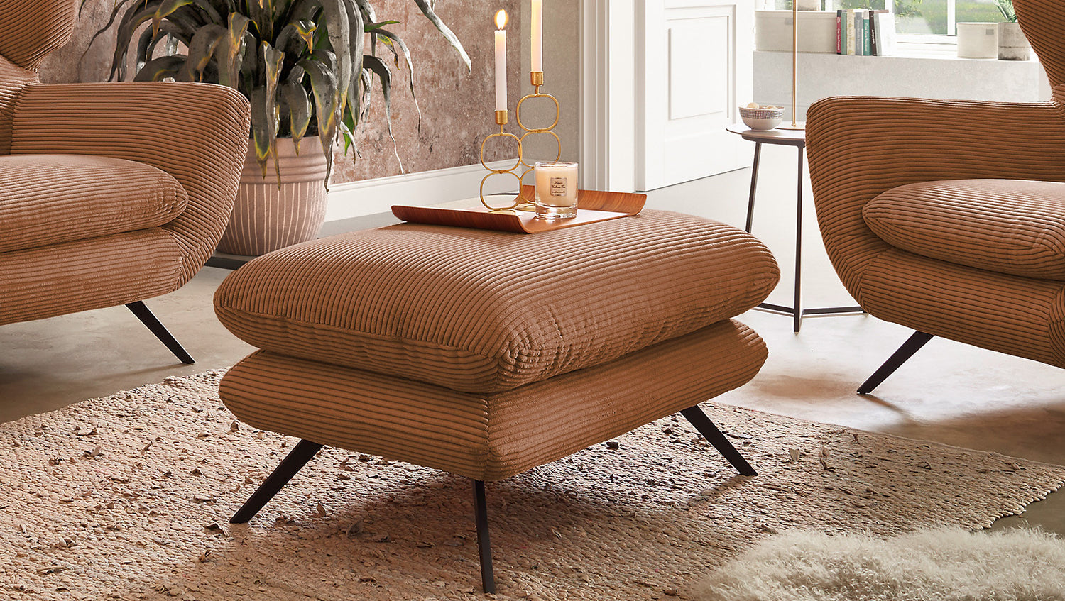 El taburete CHARME de KAWOLA es un banco taburete muy especial y pone nuevos acentos en el salón como auténtica pieza de diseño. El estilo del taburete CHARME recuerda a los años sesenta: en este caso se ha optado por la funda de pana a juego con la forma inusual. Los pies de metal negro están ligeramente acampanados. El tapizado del banco taburete CHARME impresiona por su comodidad de asiento suave y desenfadada. El asiento se adapta cómodamente a la forma del cuerpo. Las huellas del asiento y las ondulaciones de las fundas son típicas del producto. El asiento es de espuma de poliuretano, fabricada en capas de diferentes grosores y durezas. Por supuesto, el banco está completamente revestido con la tela Pana, de modo que también puede colocarse en cualquier lugar de la habitación. Si no busca un simple taburete, sino un punto de atracción muy especial, ¡el banco taburete CHARME de KAWOLA es la elección perfecta!