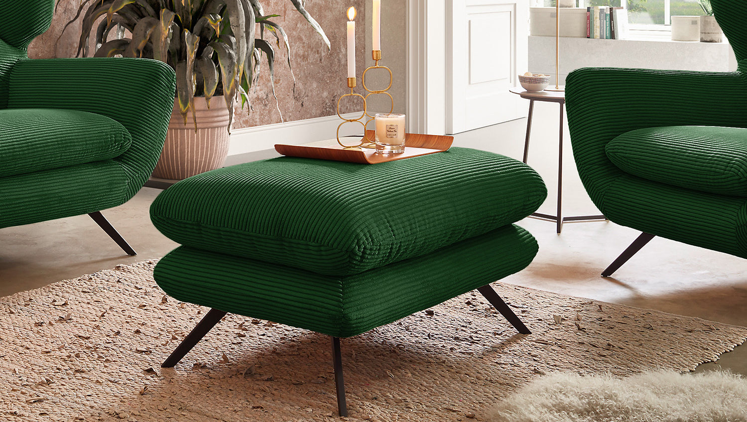 El taburete CHARME de KAWOLA es un banco taburete muy especial y pone nuevos acentos en el salón como auténtica pieza de diseño. El estilo del taburete CHARME recuerda a los años sesenta: en este caso se ha optado por la funda de pana a juego con la forma inusual. Los pies de metal negro están ligeramente acampanados. El tapizado del banco taburete CHARME impresiona por su comodidad de asiento suave y desenfadada. El asiento se adapta cómodamente a la forma del cuerpo. Las huellas del asiento y las ondulaciones de las fundas son típicas del producto. El asiento es de espuma de poliuretano, fabricada en capas de diferentes grosores y durezas. Por supuesto, el banco está completamente revestido con la tela Pana, de modo que también puede colocarse en cualquier lugar de la habitación. Si no busca un simple taburete, sino un punto de atracción muy especial, ¡el banco taburete CHARME de KAWOLA es la elección perfecta!