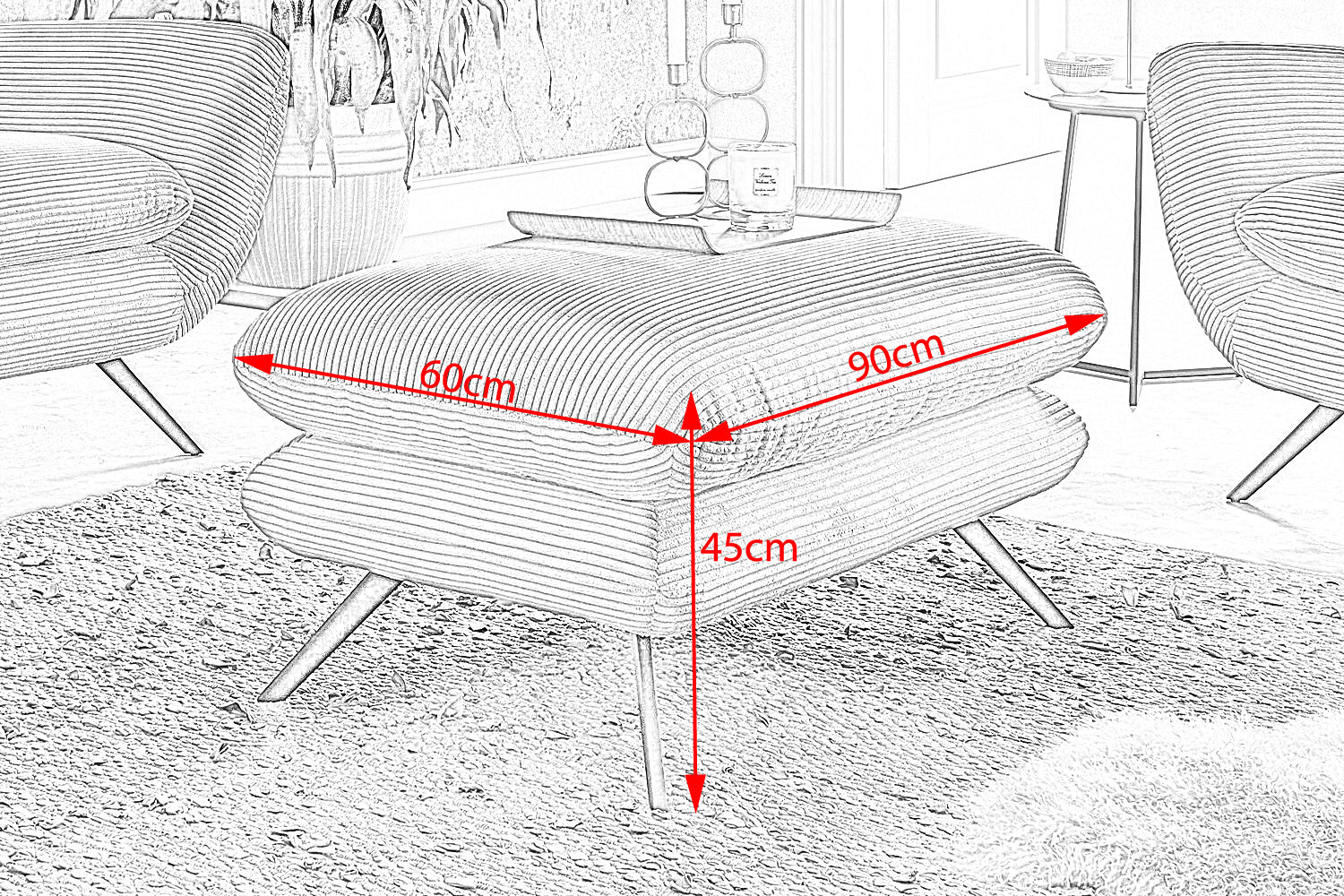 El taburete CHARME de KAWOLA es un banco taburete muy especial y pone nuevos acentos en el salón como auténtica pieza de diseño. El estilo del taburete CHARME recuerda a los años sesenta: en este caso se ha optado por la funda de pana a juego con la forma inusual. Los pies de metal negro están ligeramente acampanados. El tapizado del banco taburete CHARME impresiona por su comodidad de asiento suave y desenfadada. El asiento se adapta cómodamente a la forma del cuerpo. Las huellas del asiento y las ondulaciones de las fundas son típicas del producto. El asiento es de espuma de poliuretano, fabricada en capas de diferentes grosores y durezas. Por supuesto, el banco está completamente revestido con la tela Pana, de modo que también puede colocarse en cualquier lugar de la habitación. Si no busca un simple taburete, sino un punto de atracción muy especial, ¡el banco taburete CHARME de KAWOLA es la elección perfecta!