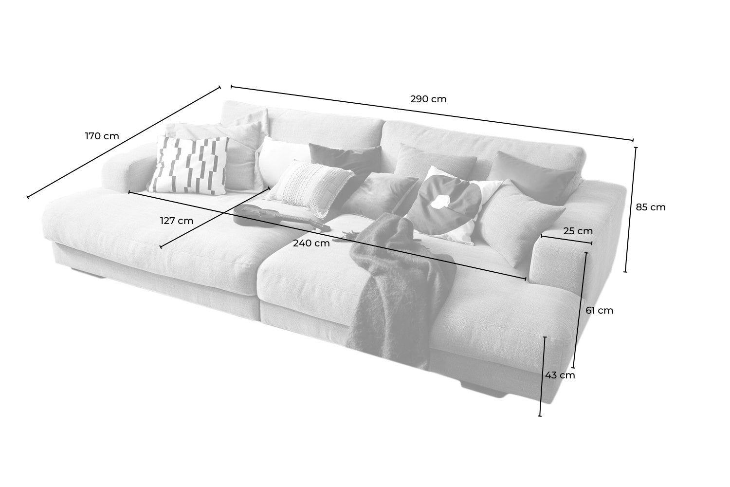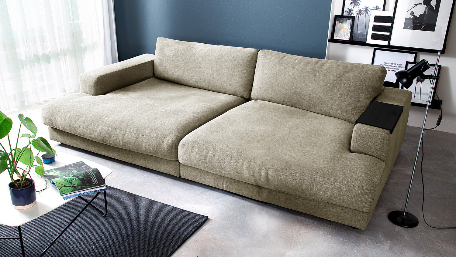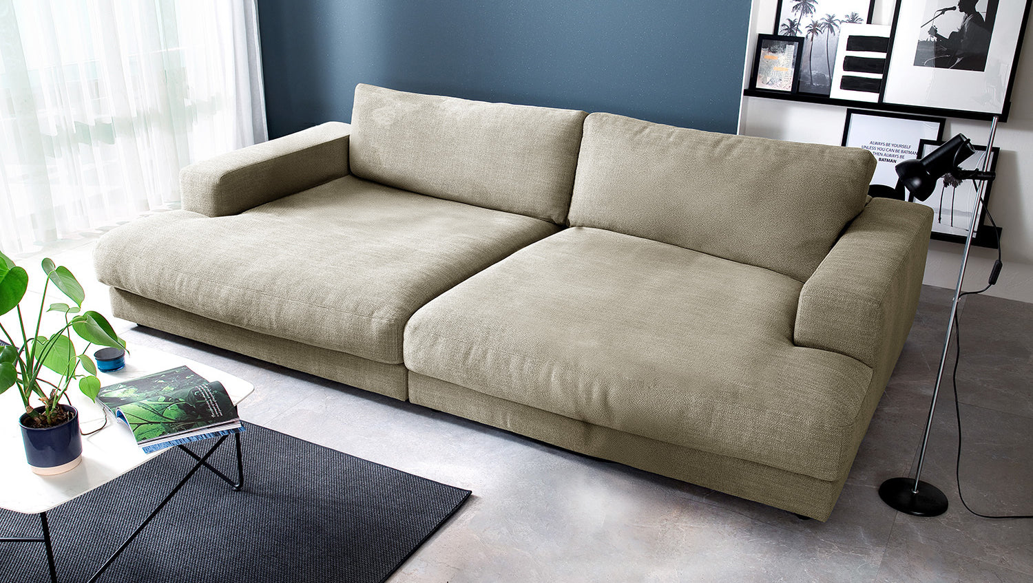 El Sofá extra ancho MADELINE de KAWOLA impresiona por su extraordinaria comodidad de asiento, que se consigue gracias a su tapizado extremadamente desenfadado y que invita a quedarse y relajarse. Sus inusuales dimensiones y su forma moderna y urbana confieren al sofá un aspecto inconfundible y ofrecen mucho espacio para pasar veladas acogedoras. Con su diseño atemporal, se integra a la perfección en cualquier ambiente y, además, destaca en cualquier rincón de la habitación. Si quiere dar a su salón un toque extraordinario, el Sofá extra ancho MADELINE es sin duda la elección correcta.