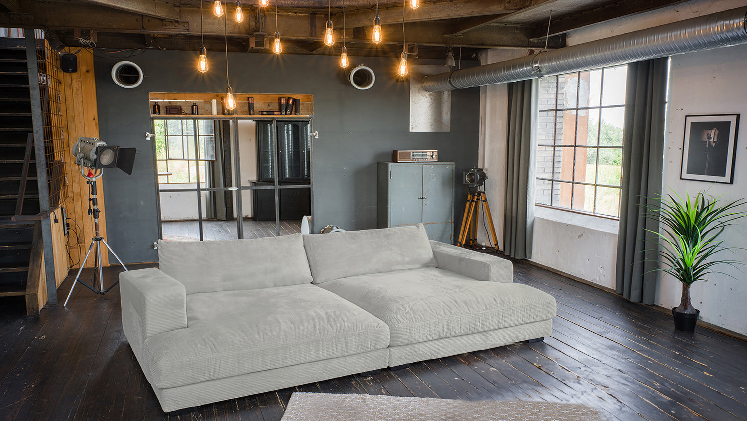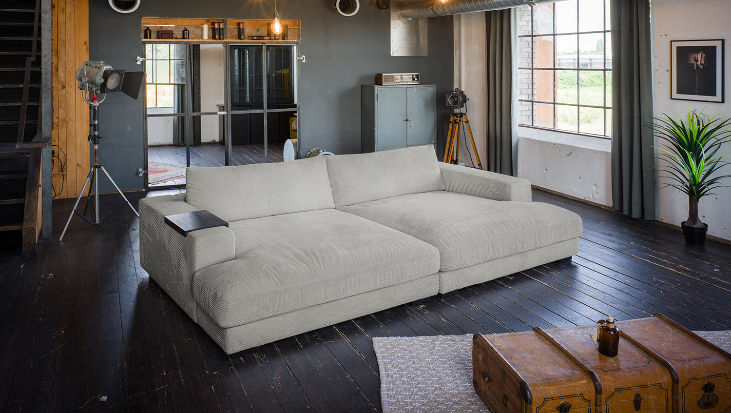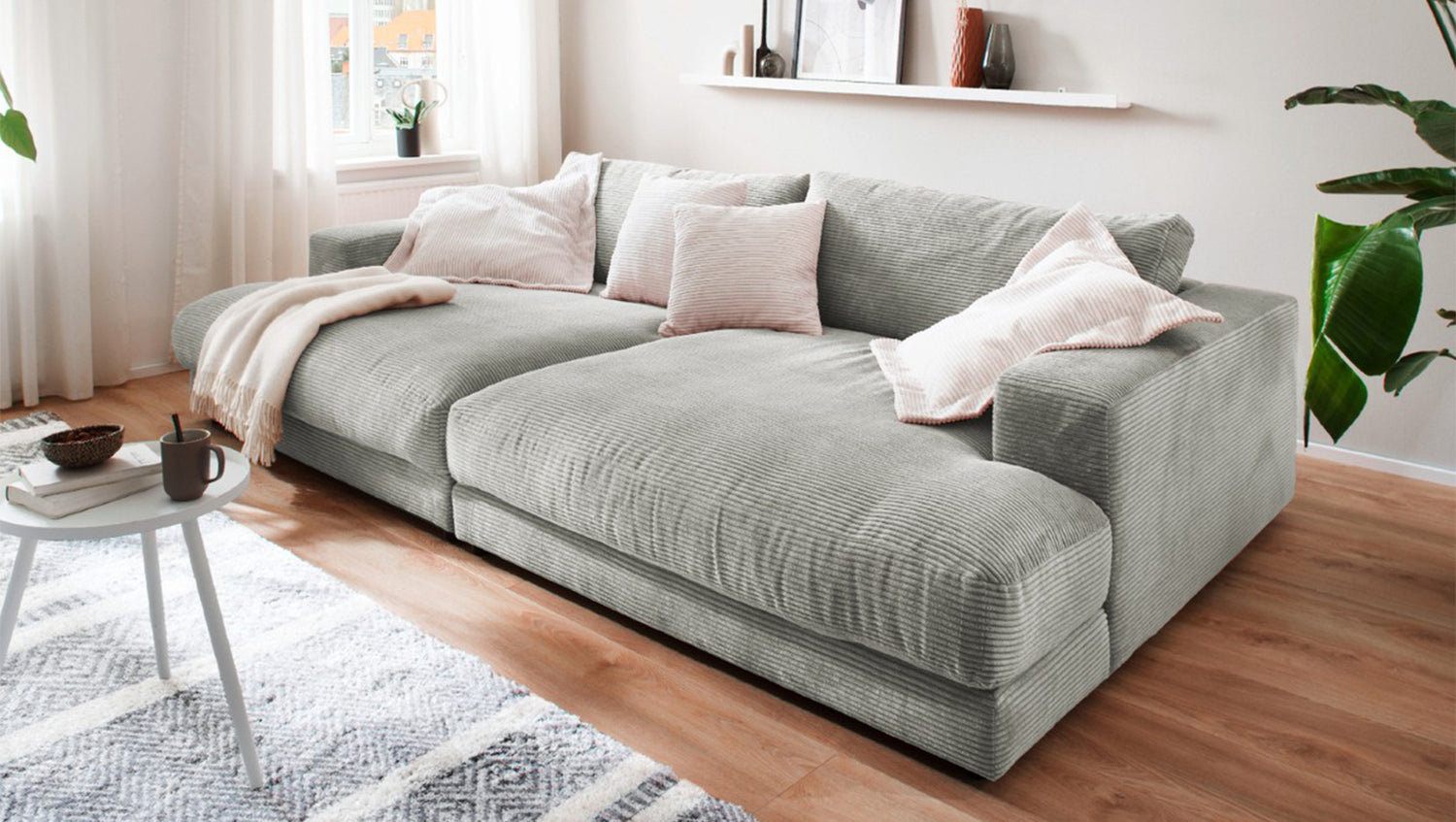KAWOLA Sofá extra ancho MADELINE Pana gris claro