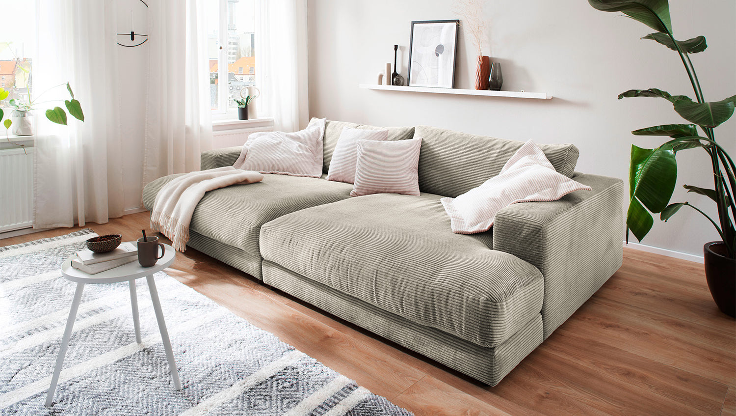 El Sofá extra ancho MADELINE de KAWOLA impresiona por su extraordinaria comodidad de asiento, que se consigue gracias a su tapizado extremadamente desenfadado y que invita a quedarse y relajarse. Sus inusuales dimensiones y su forma moderna y urbana confieren al sofá un aspecto inconfundible y ofrecen mucho espacio para pasar veladas acogedoras. Con su diseño atemporal, se integra a la perfección en cualquier ambiente y, además, destaca en cualquier rincón de la habitación. Si quiere dar a su salón un toque extraordinario, el Sofá extra ancho MADELINE es sin duda la elección correcta.