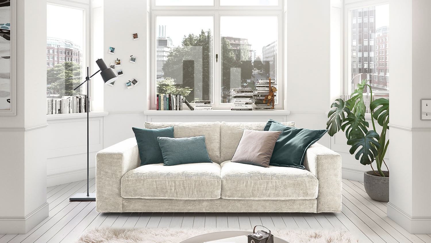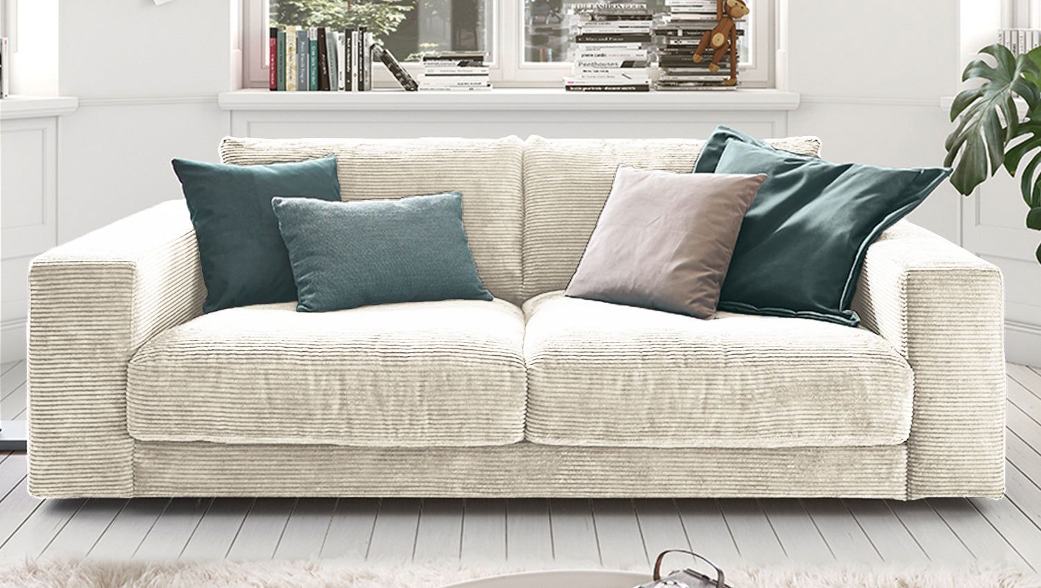KAWOLA Sofá MADELINE 2 plazas Pana crema blanco