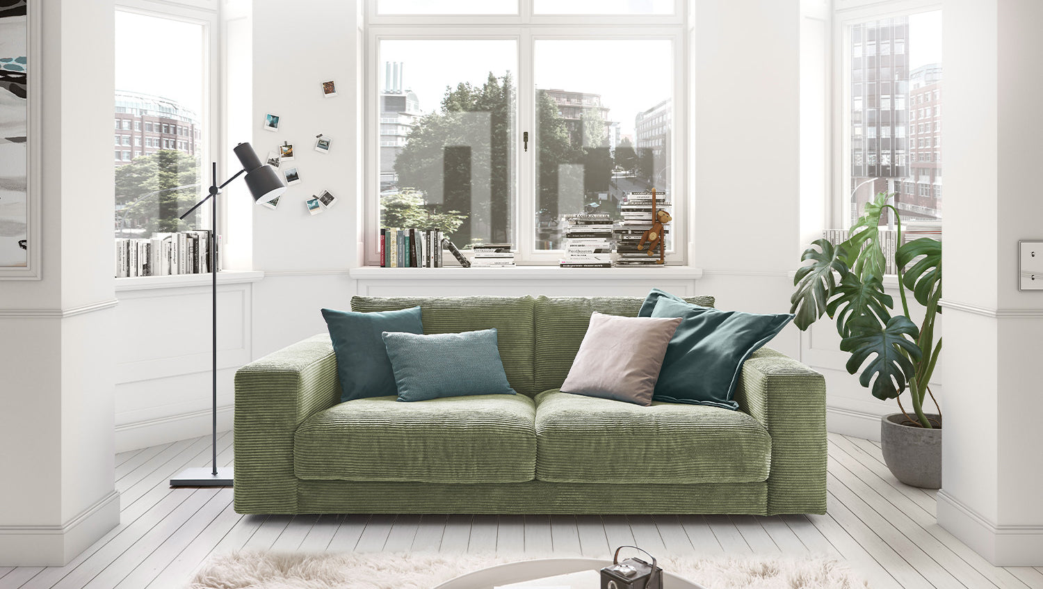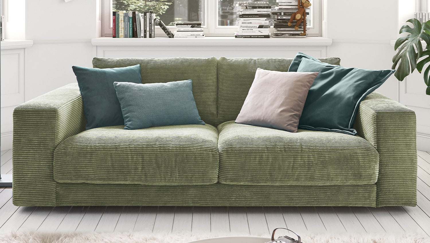 KAWOLA Sofá MADELINE 2 plazas pana verde oliva