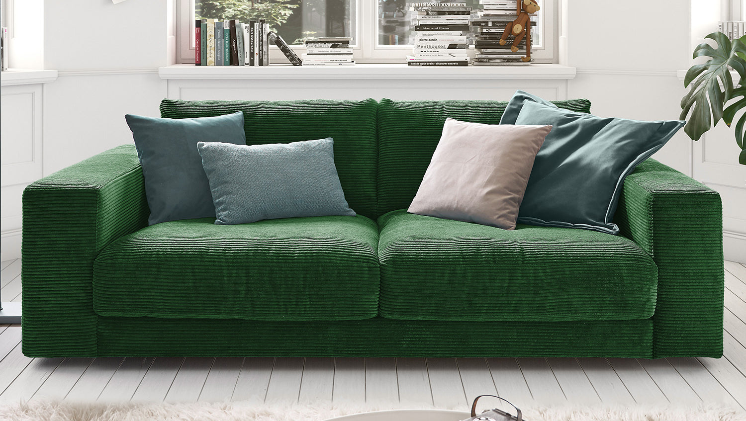 KAWOLA Sofá MADELINE 2 plazas Pana esmeralda