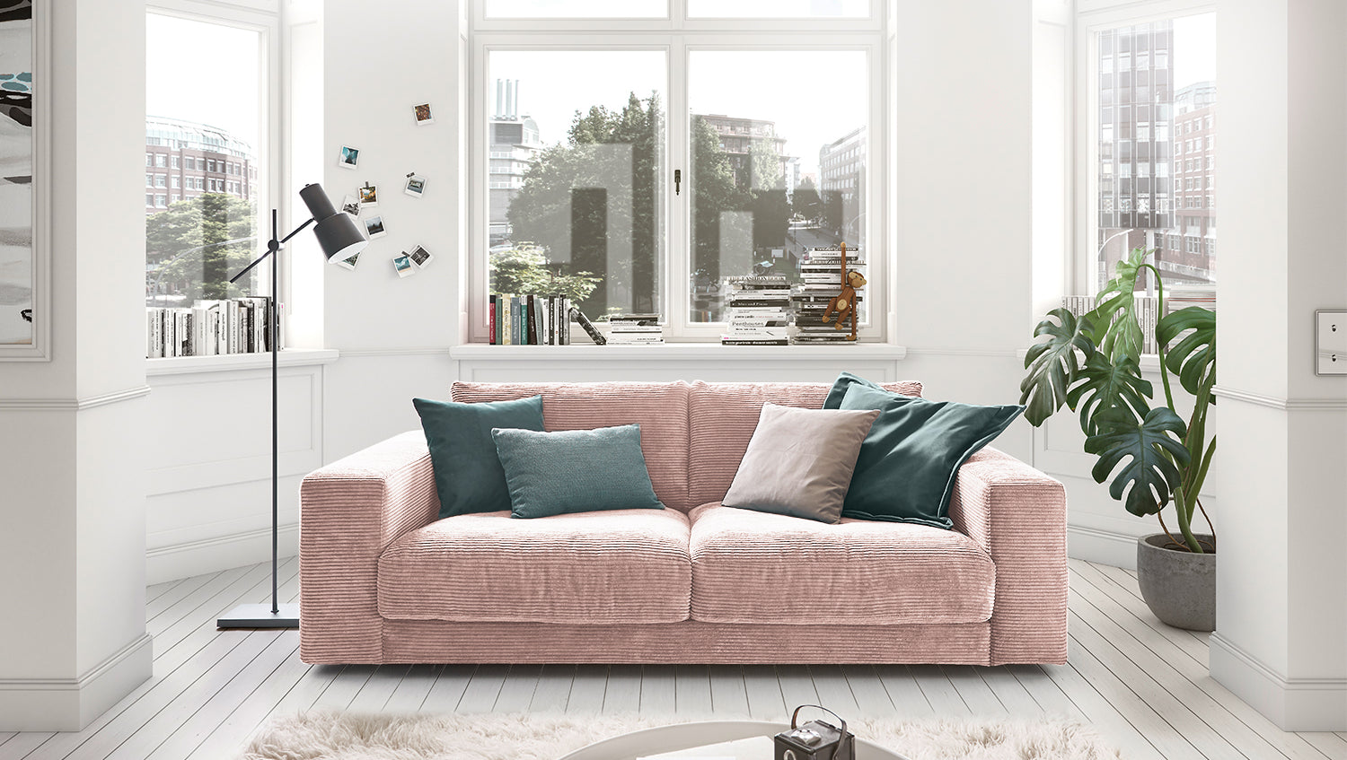 KAWOLA Sofá MADELINE 2 plazas pana rosa
