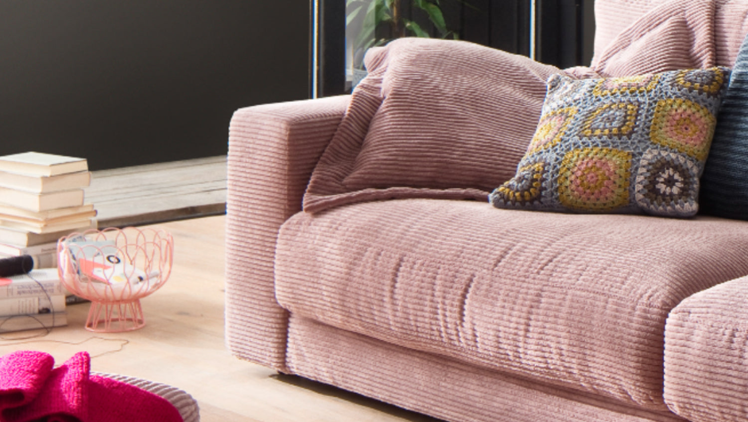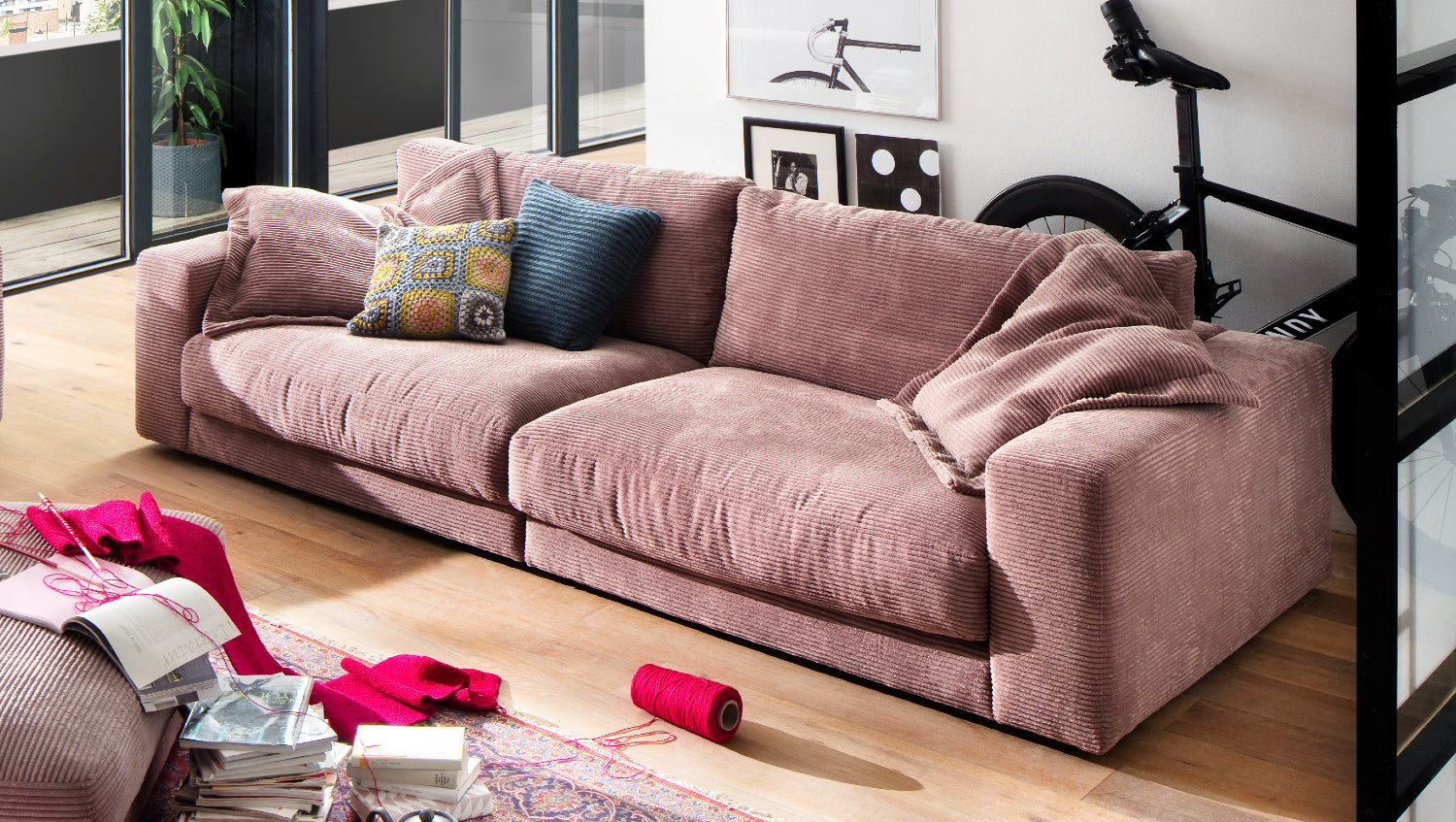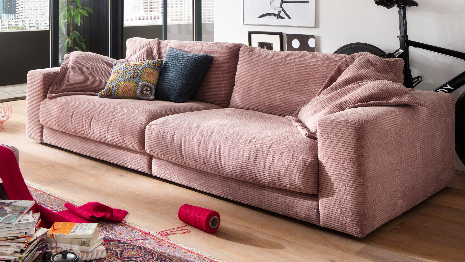 KAWOLA Sofá MADELINE 3 plazas pana rosa