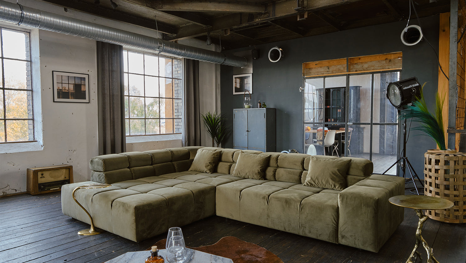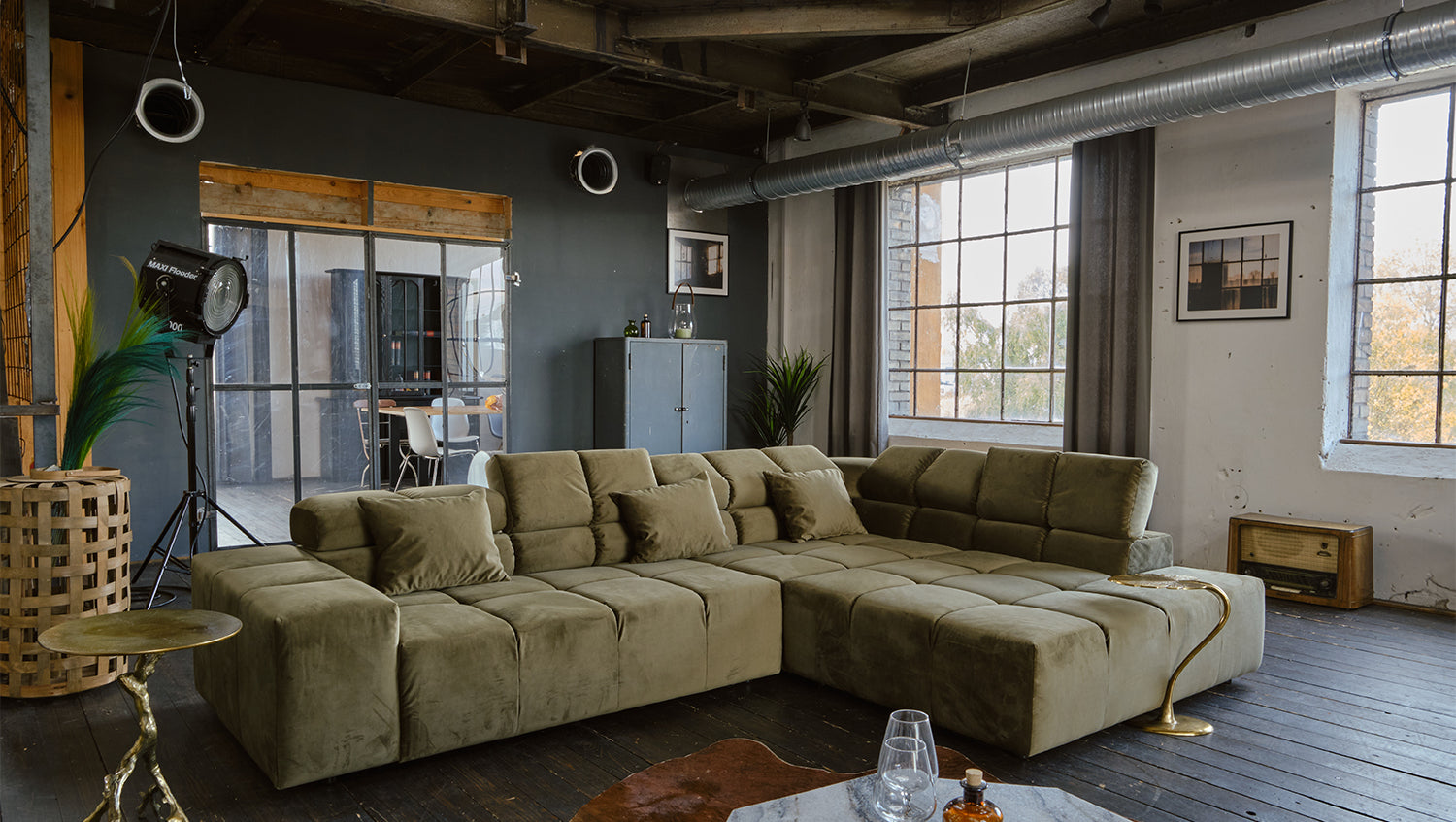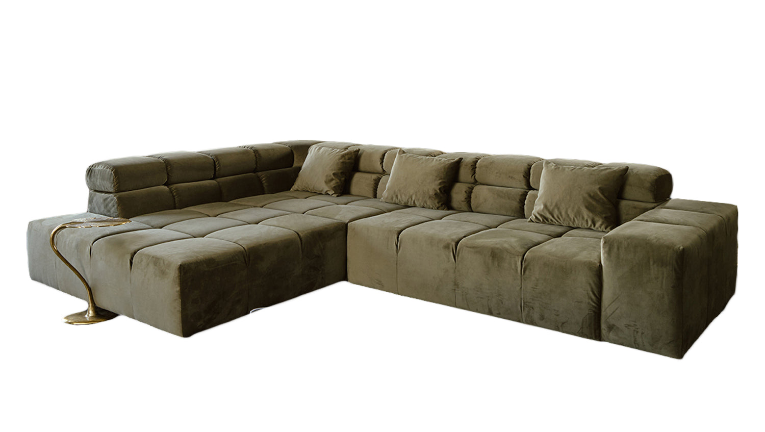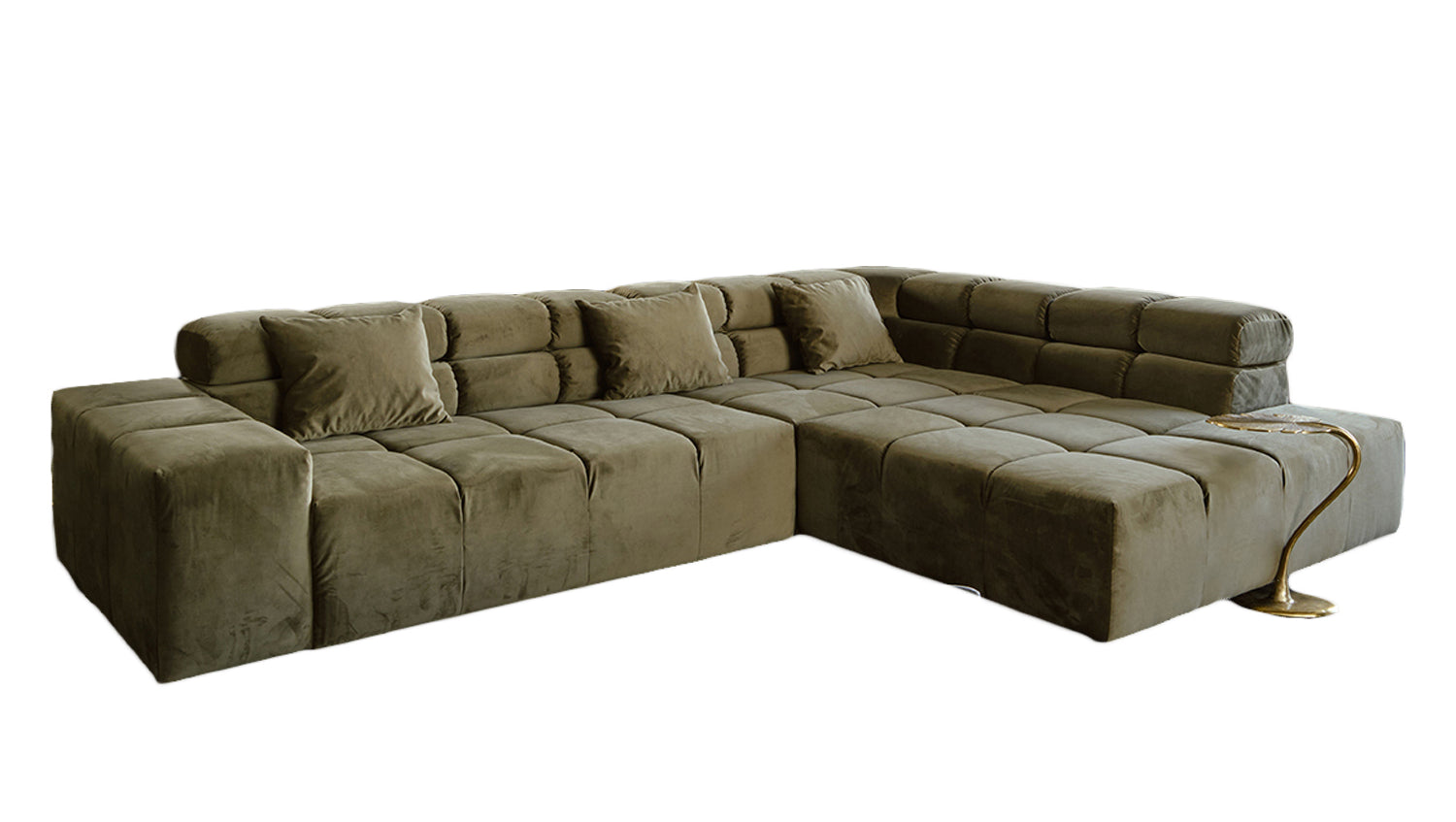KAWOLA Sofá NEVADA Sofá esquinero Terciopelo verde oliva