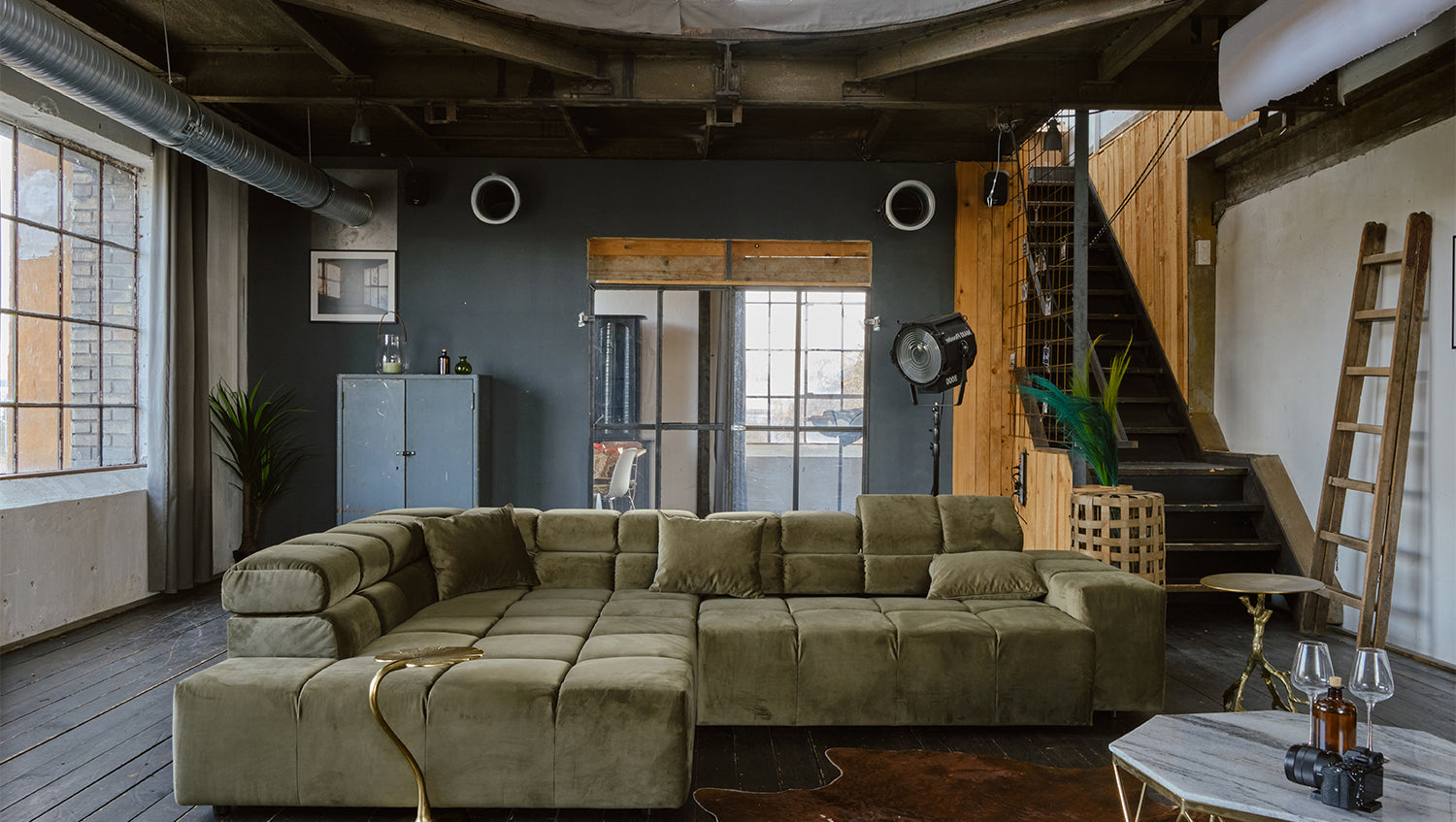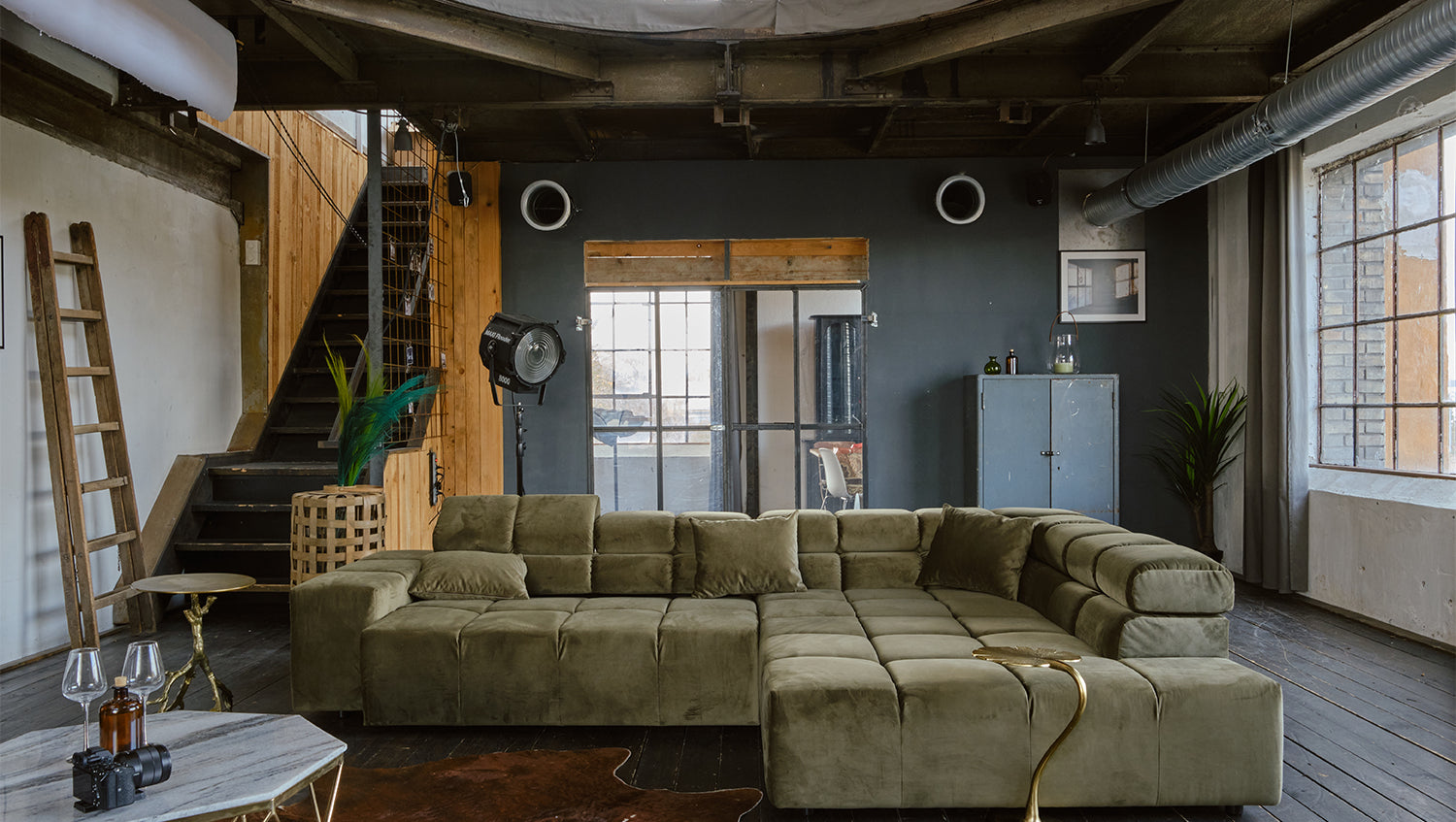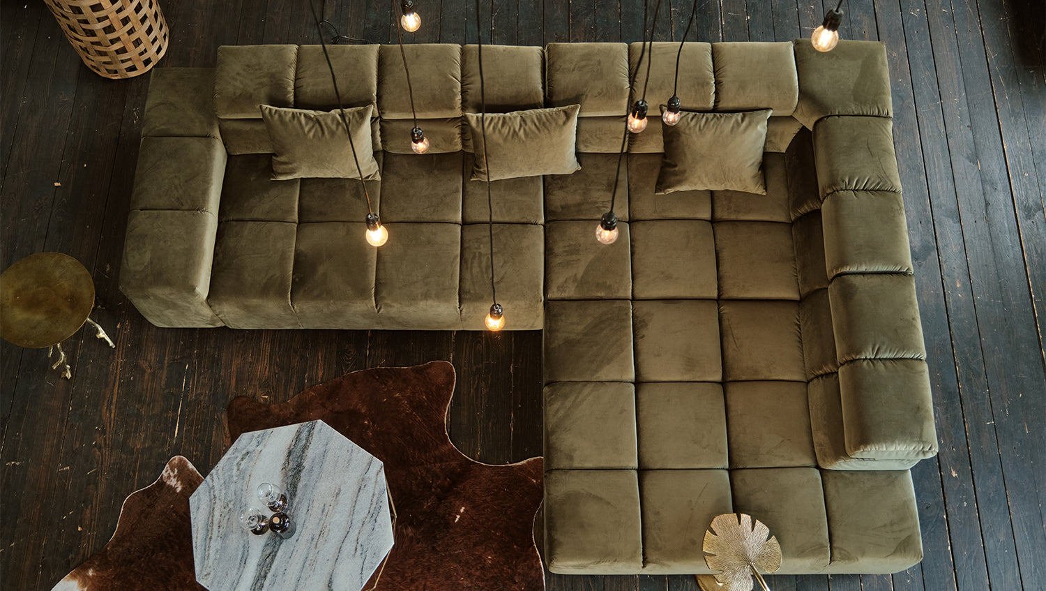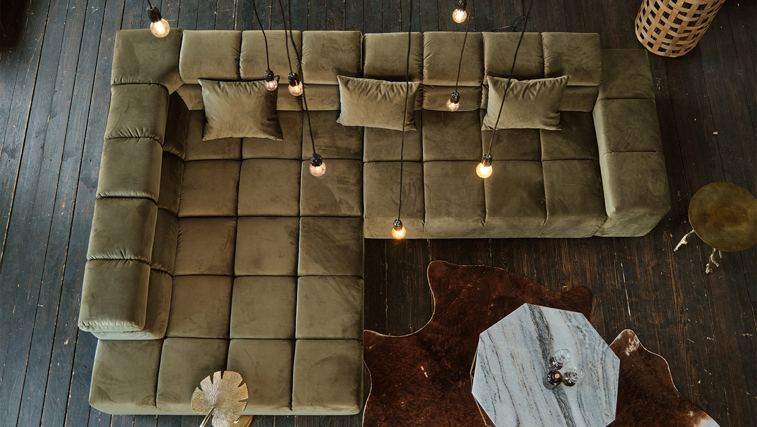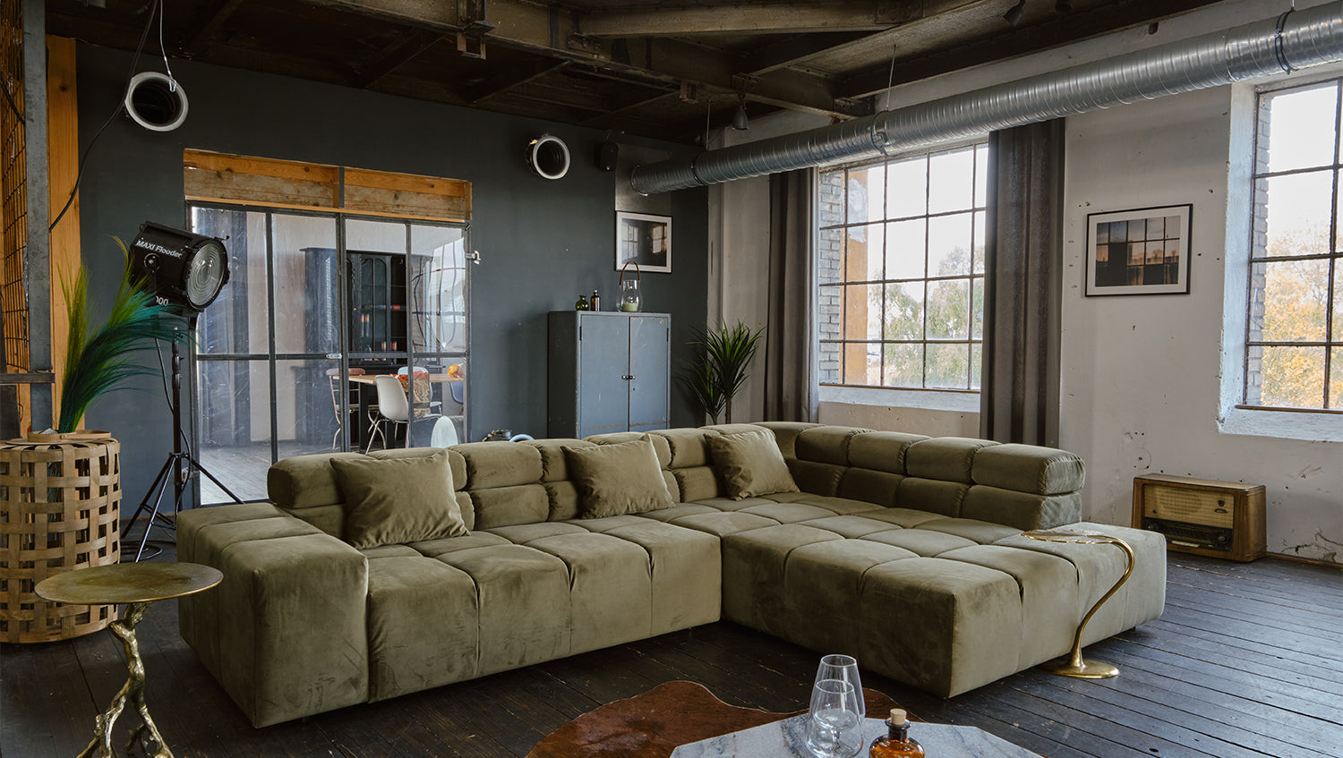 KAWOLA Sofá NEVADA Sofá esquinero Terciopelo verde oliva