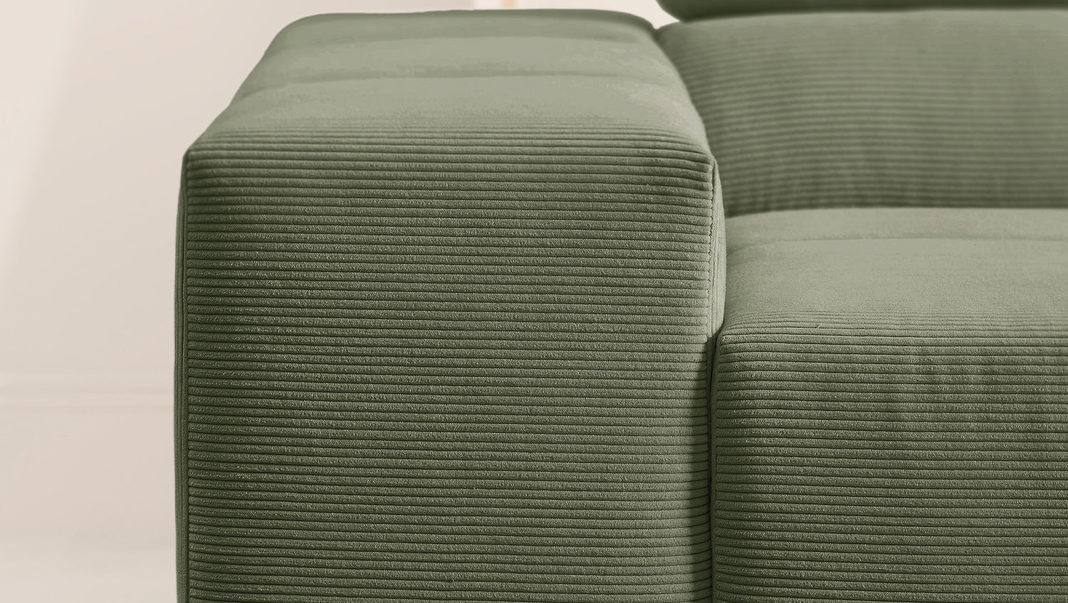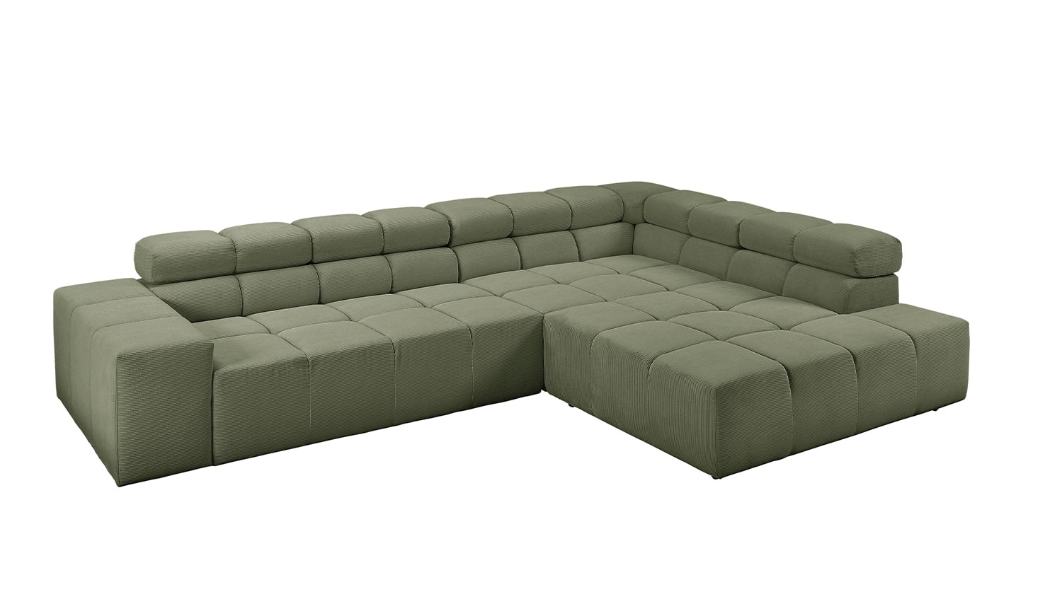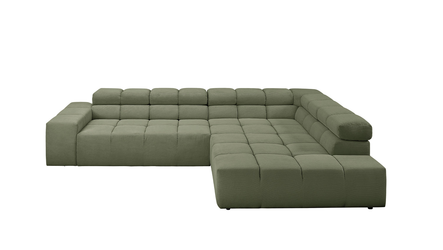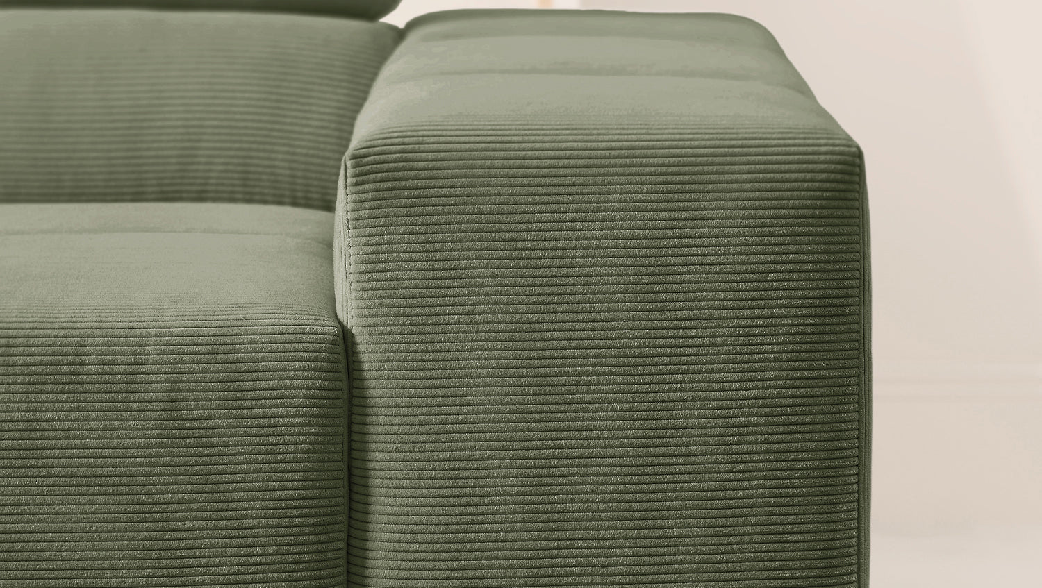 KAWOLA Sofá NEVADA Sofá esquinero Pana fina verde oliva