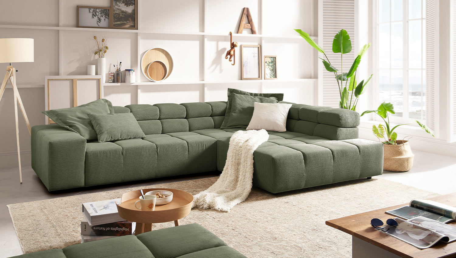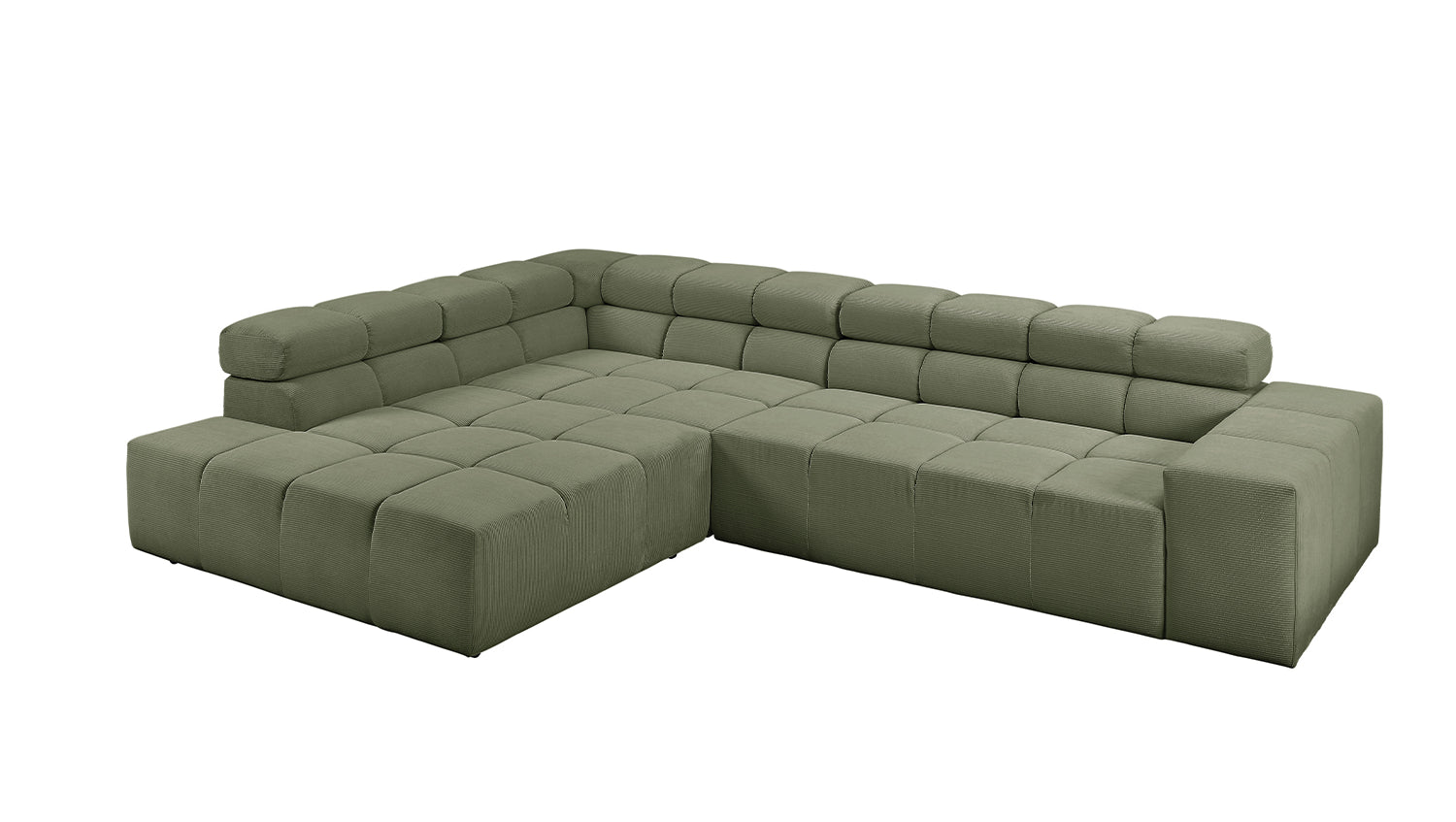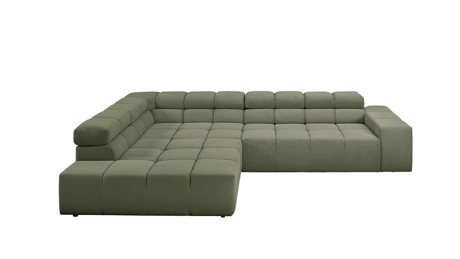 KAWOLA Sofá NEVADA Sofá esquinero Pana fina verde oliva