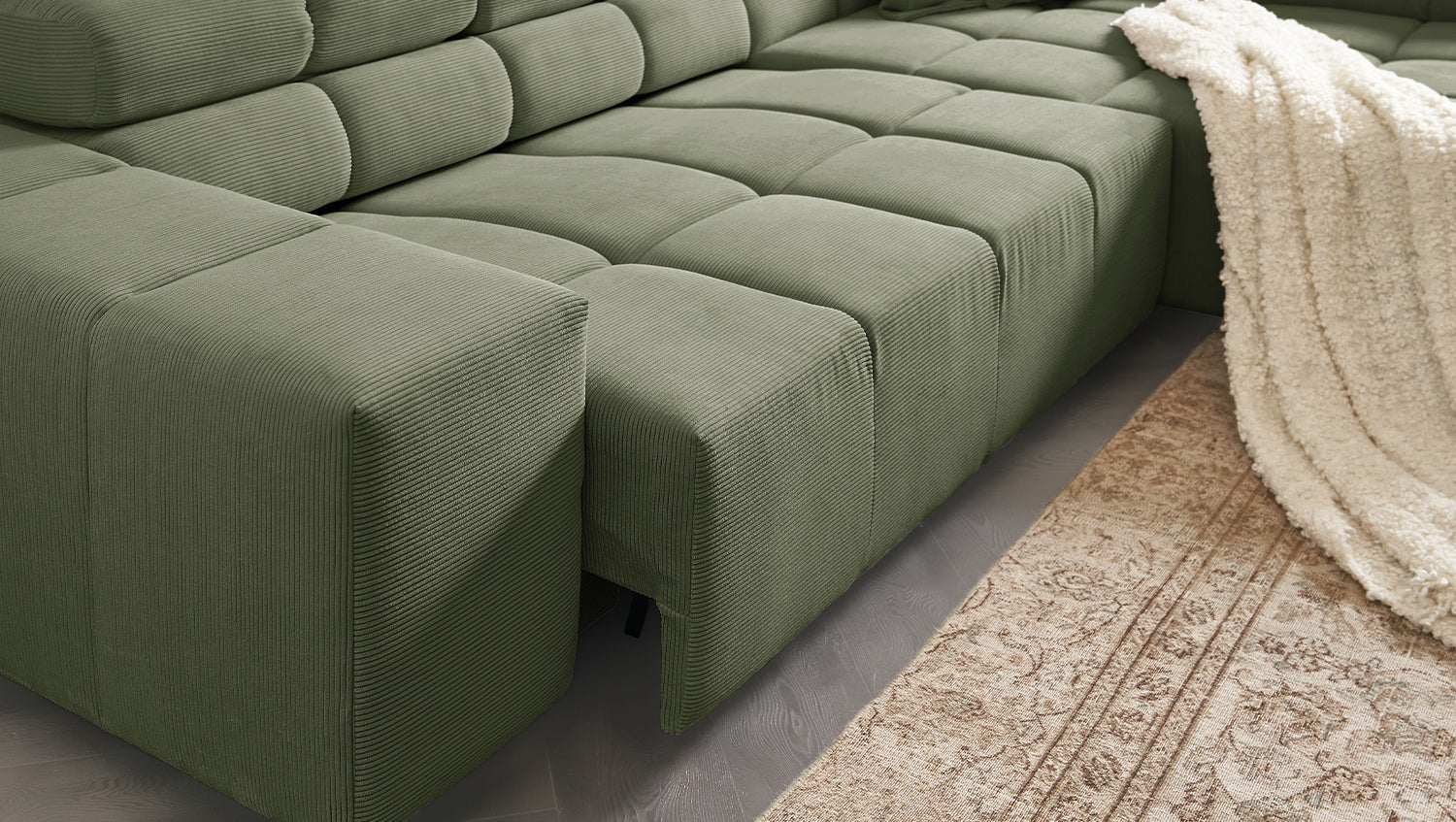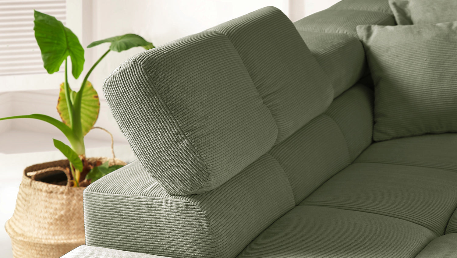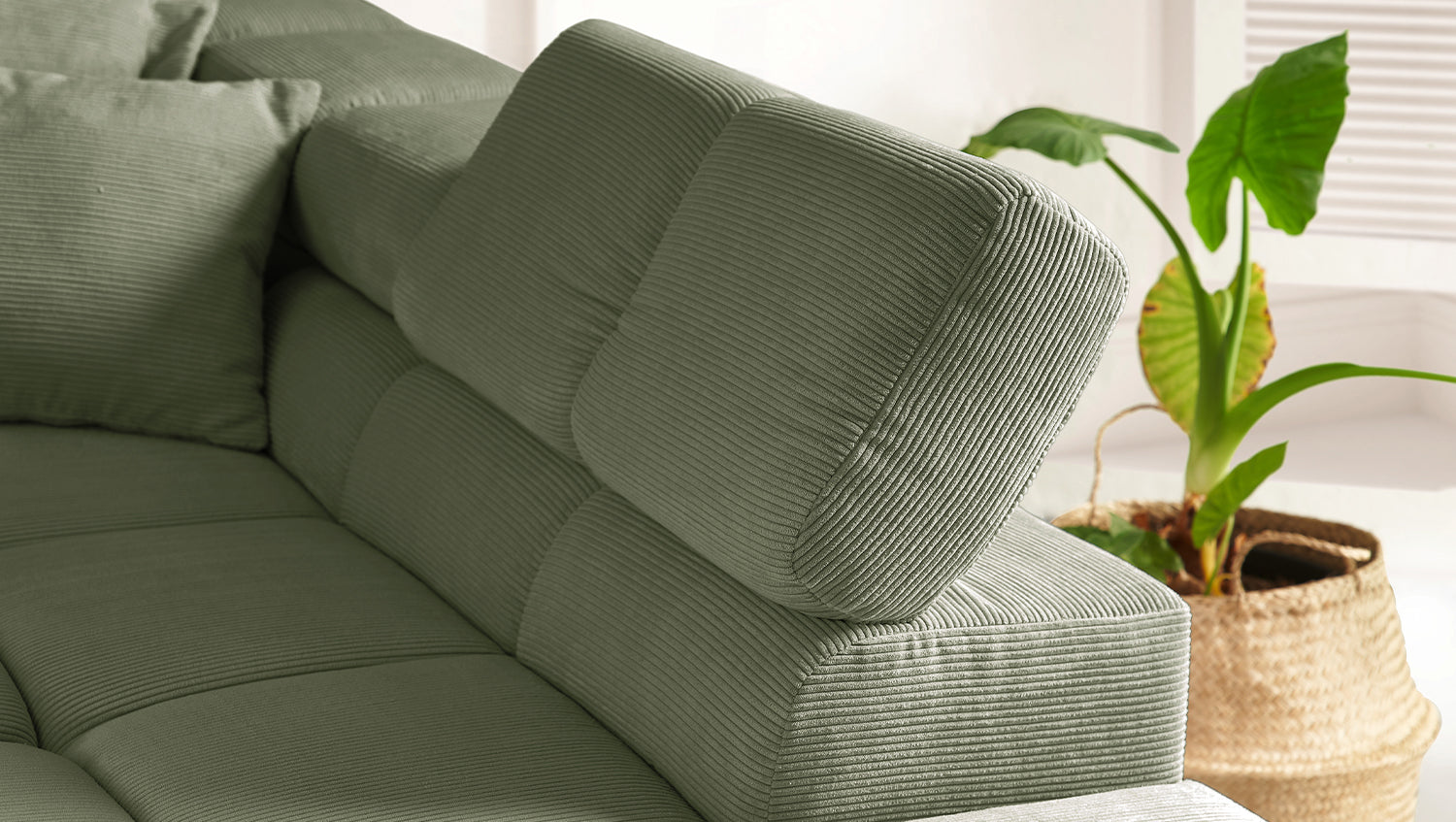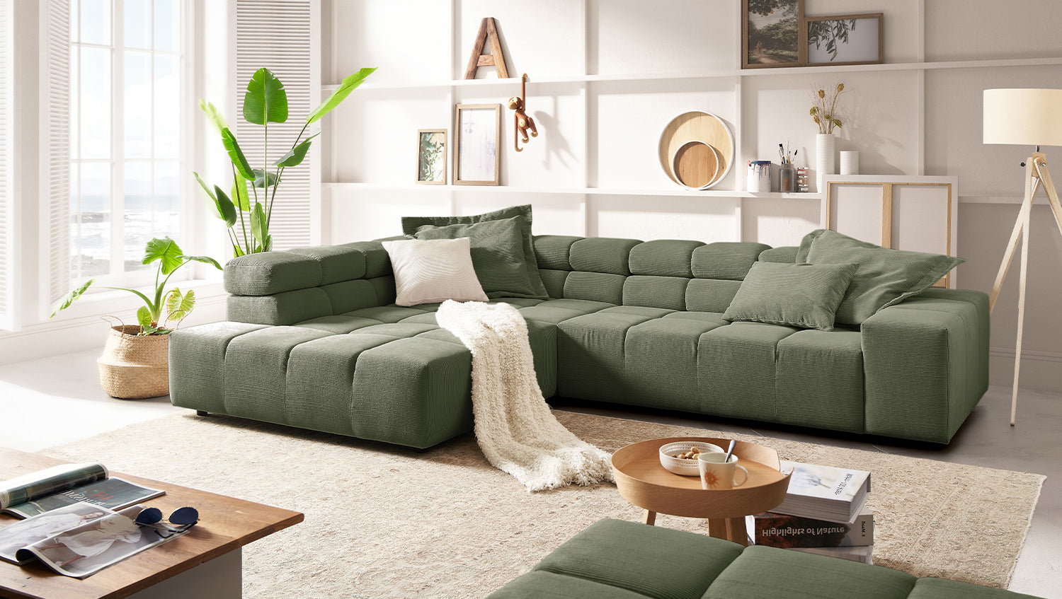 KAWOLA Sofá NEVADA Sofá esquinero Pana fina verde oliva