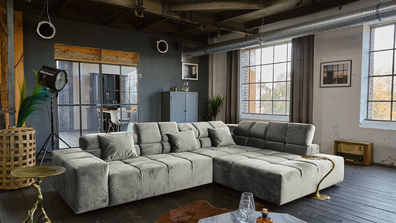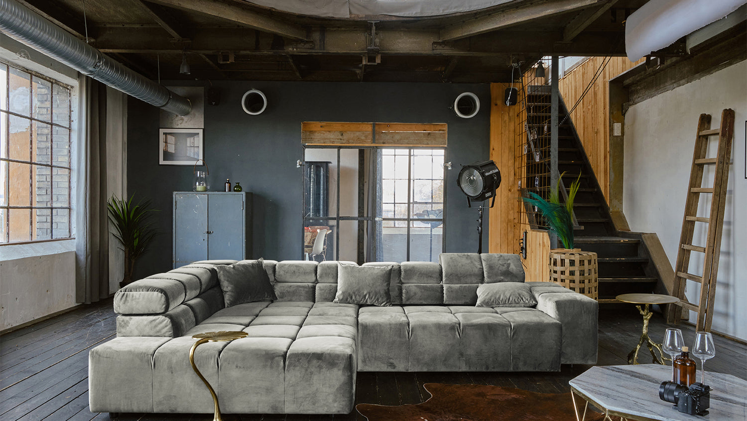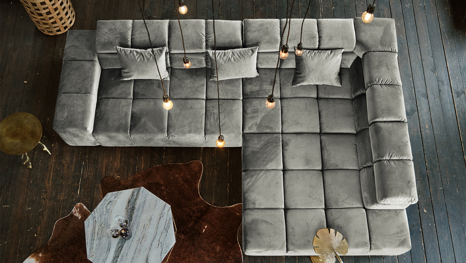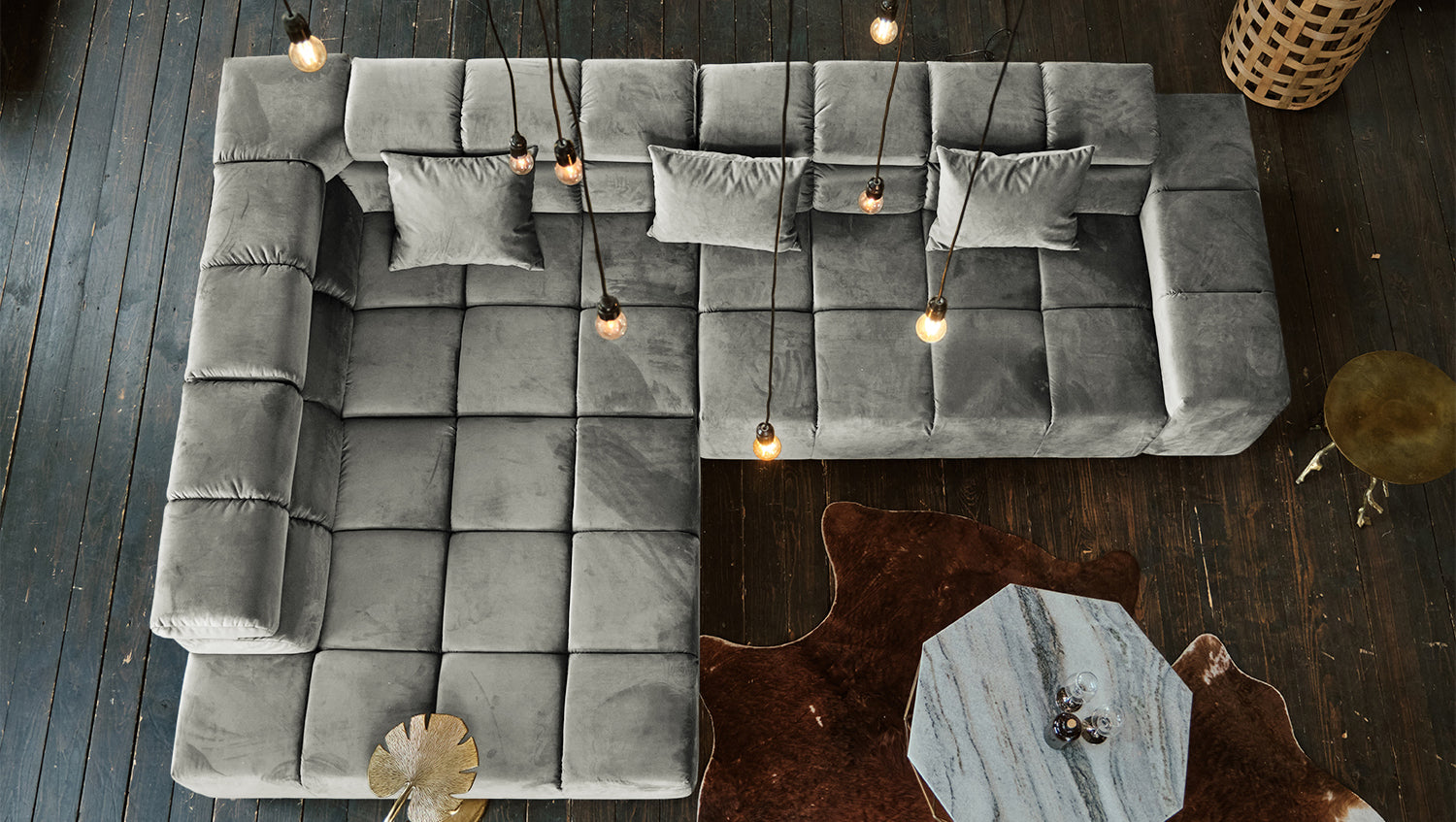 KAWOLA Sofá NEVADA Sofá esquinero Terciopelo plata