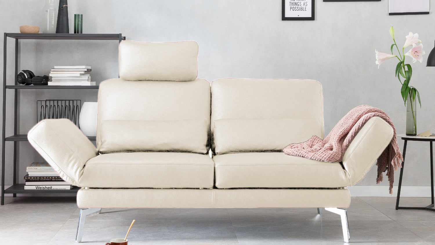 Sofá KAWOLA HURRICANE de 2 plazas de piel blanca