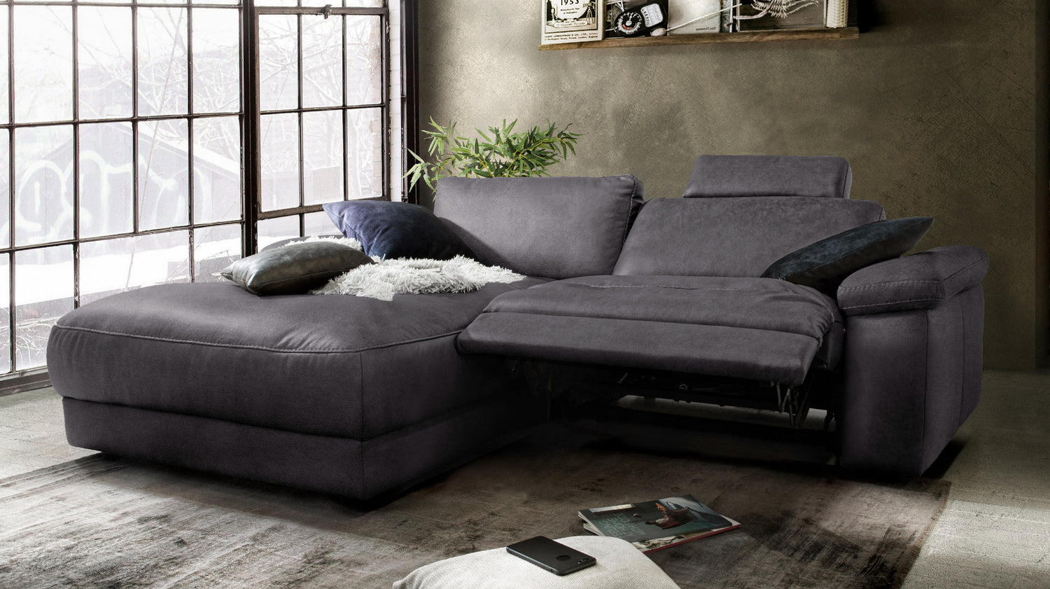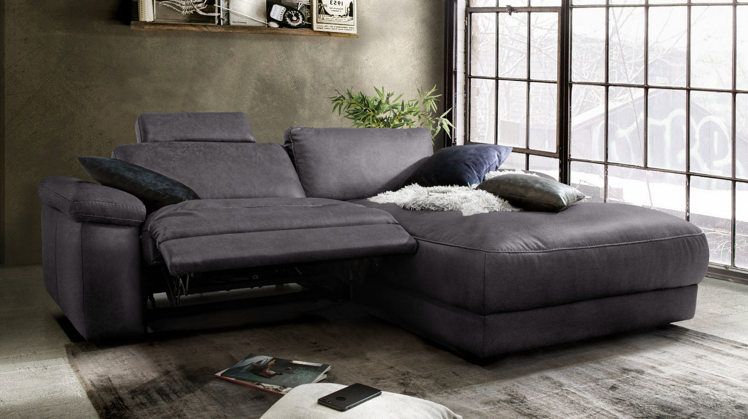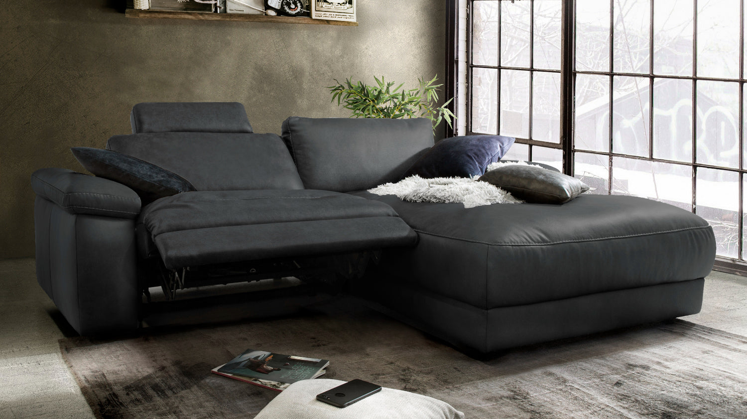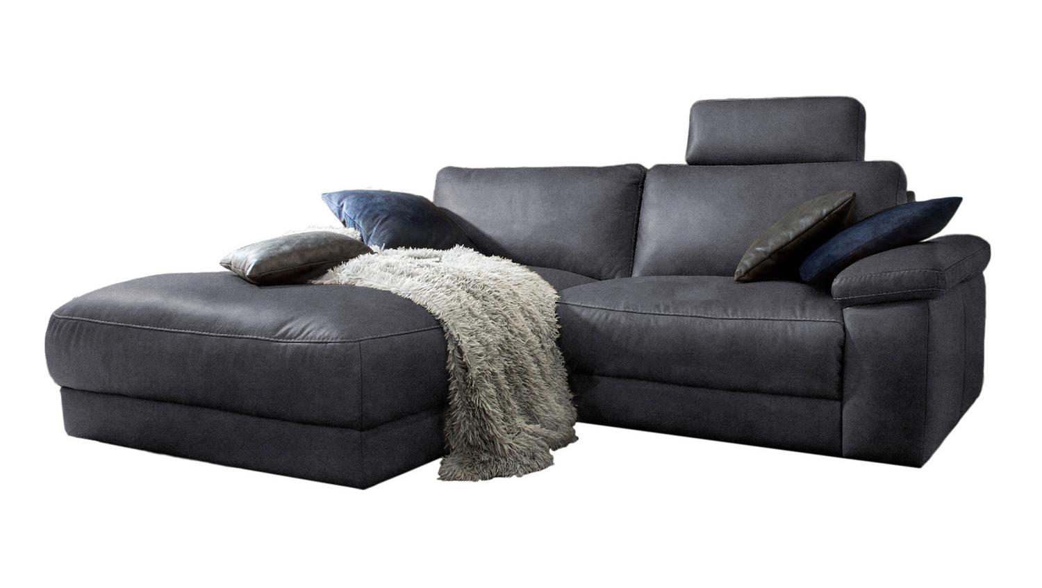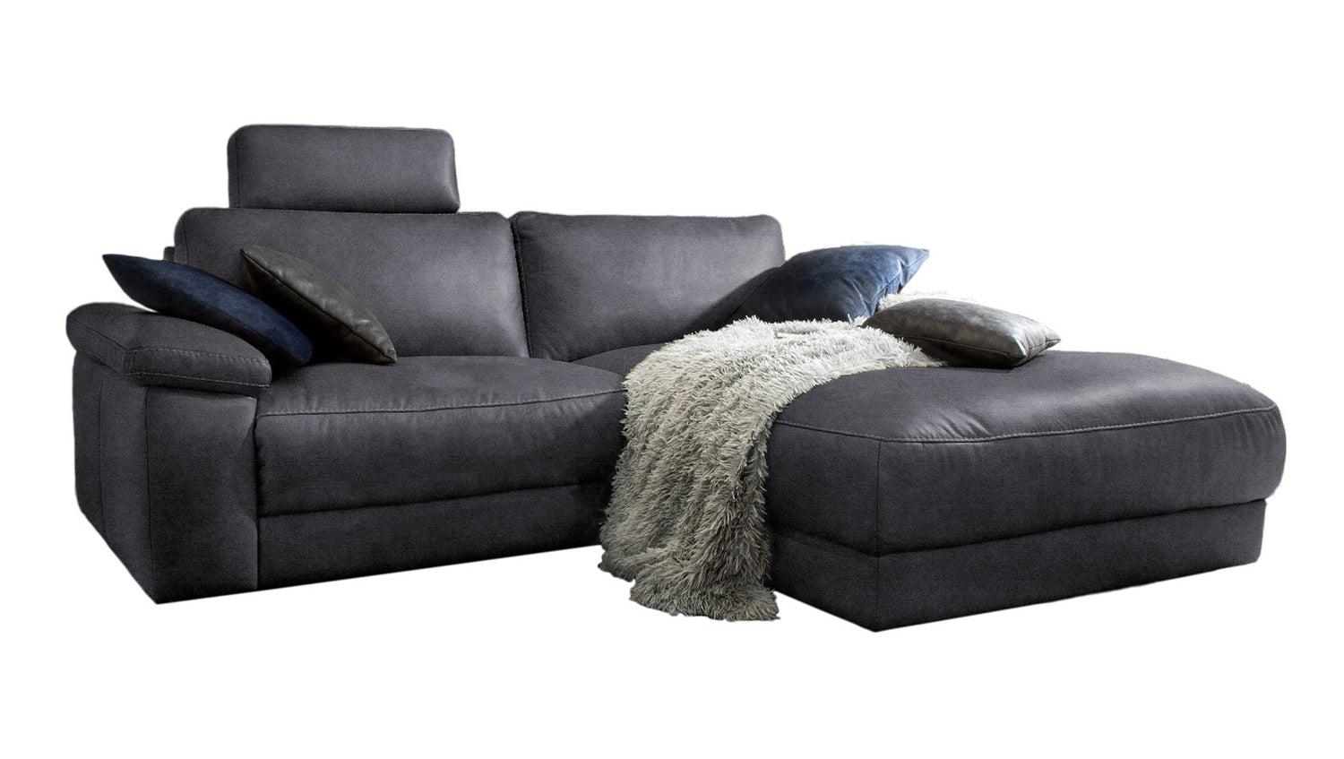 KAWOLA Sofá LOLA Sofá esquinero negro con función relax motorizada varias fundas fundas