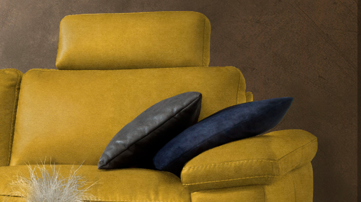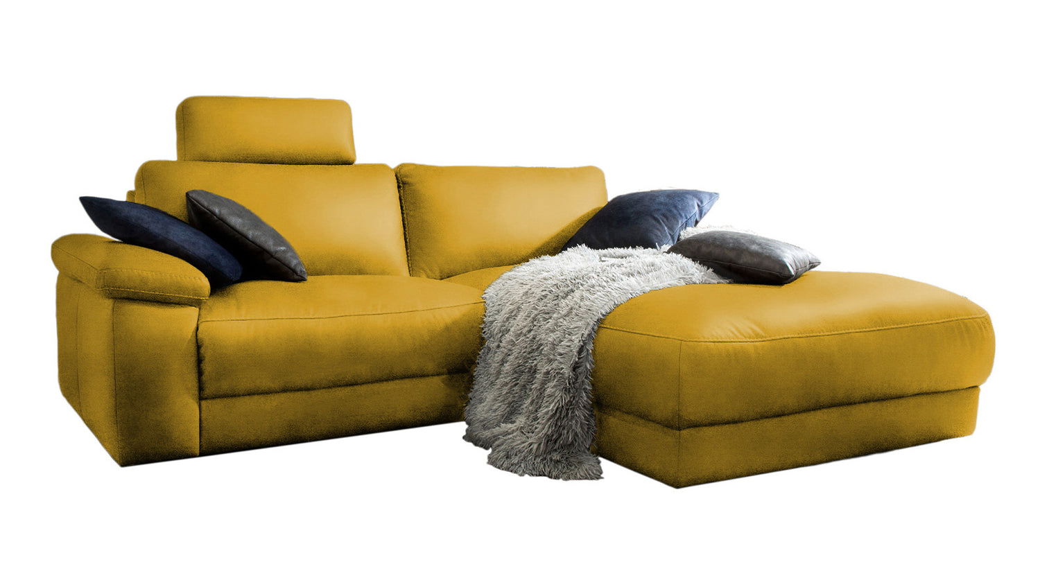 KAWOLA Sofá LOLA Sofá esquinero de tela curry con función relax motorizada