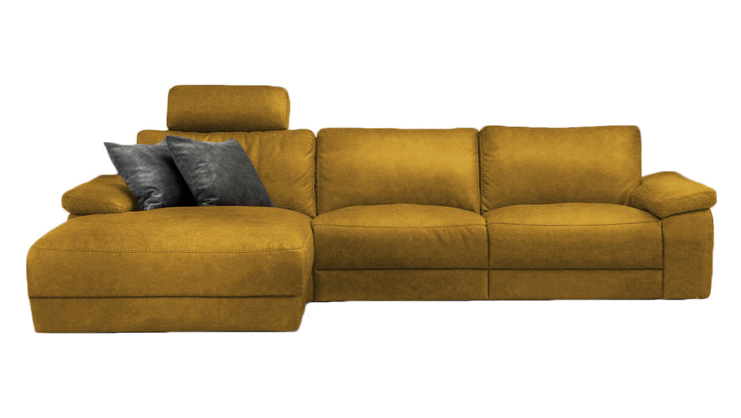 KAWOLA Sofá LOLA sofá esquinero XL de tela curry con función relax motorizada