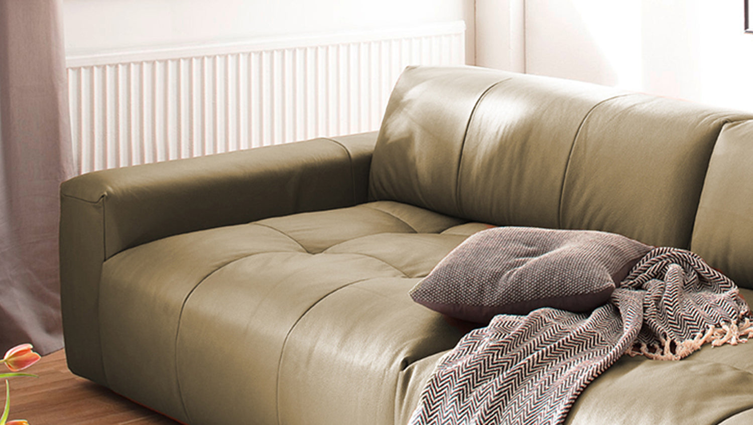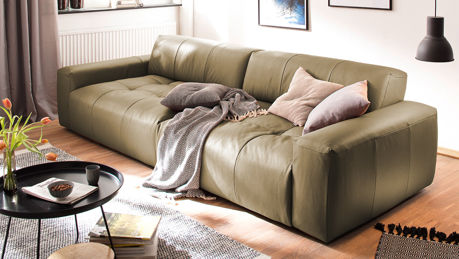 El sofá PALACE impresiona por su elegancia atemporal, su diseño moderno y su confort especialmente elevado. La resistente funda de cuero grueso cubre la acogedora superficie reclinable, cuyo desenfadado tapizado invita a relajarse y descansar. El extra especial: el sofá PALACE puede transformarse de un Sofá extra ancho en un mueble de asiento clásico en un abrir y cerrar de ojos. Gracias a la regulación de la profundidad del asiento, que se consigue ajustando el respaldo, la profundidad del asiento puede reducirse de 83 cm a 59 cm. Esto le permite decidir si prefiere una posición sentada más erguida o si prefiere tener espacio para estirarse. Nota: Cuando son nuevas, las fundas muestran un pronunciado patrón ondulado, que es intencionado debido al diseño, el modelo y la construcción. La tapicería se adaptará a la forma del cuerpo y la firmeza del asiento disminuirá ligeramente. Las ligeras diferencias en la firmeza del asiento de los grupos complementarios se deben al diseño y, por tanto, no son motivo de queja.