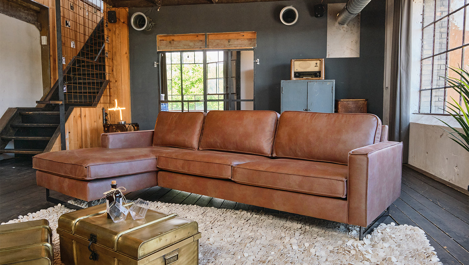 El sofá VILNIUS de KAWOLA ofrece todos los puntos fuertes de un sofá de piel clásico y mucho más. La funda de tejido de fibra de piel es una alternativa innovadora a la piel auténtica: está fabricada con fibras de piel recicladas que se combinan con aglutinantes naturales y fibras textiles. El resultado es un material resistente y de alta calidad con un aspecto de auténtica piel y un tacto agradablemente suave. El tejido de fibra de cuero es de fácil cuidado, dimensionalmente estable y transpirable, mientras que el sólido armazón de madera garantiza una extrema robustez y un tapizado cómodo y desenfadado para disfrutar de un asiento mullido. A pesar de sus grandes dimensiones, el sofá esquinero se puede colocar de forma flexible en cualquier habitación, convirtiéndolo en un punto de atracción visual en todo momento, mientras que los pies metálicos de aspecto industrial proporcionan un bello contraste con el cuerpo del sofá. En definitiva, el sofá KAWOLA VILNIUS creará un ambiente maravillosamente acogedor en cualquier ocasión.