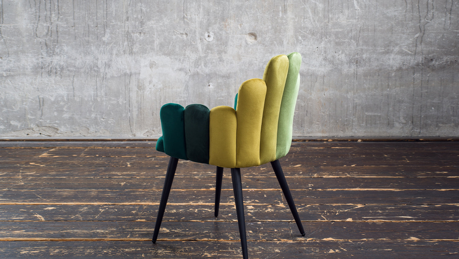 La silla FREJA de KAWOLA combina un agradable confort de asiento y un moderno diseño de salón. Aquí podrá reclinarse cómodamente y cenar con estilo. La tela de tapizado de terciopelo tiene un acabado de alta calidad y el elaborado diseño del respaldo en diferentes colores confiere a la silla un aspecto especial. Ya sea en el despacho o en el comedor, la silla FREJA se adapta a prácticamente cualquier espacio gracias a su moderno diseño.