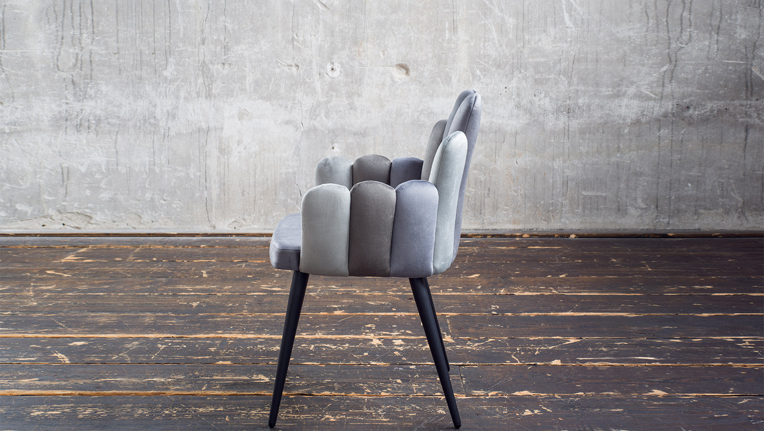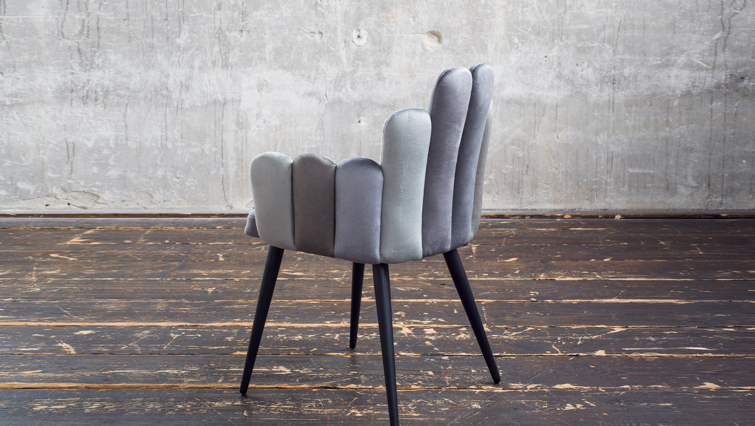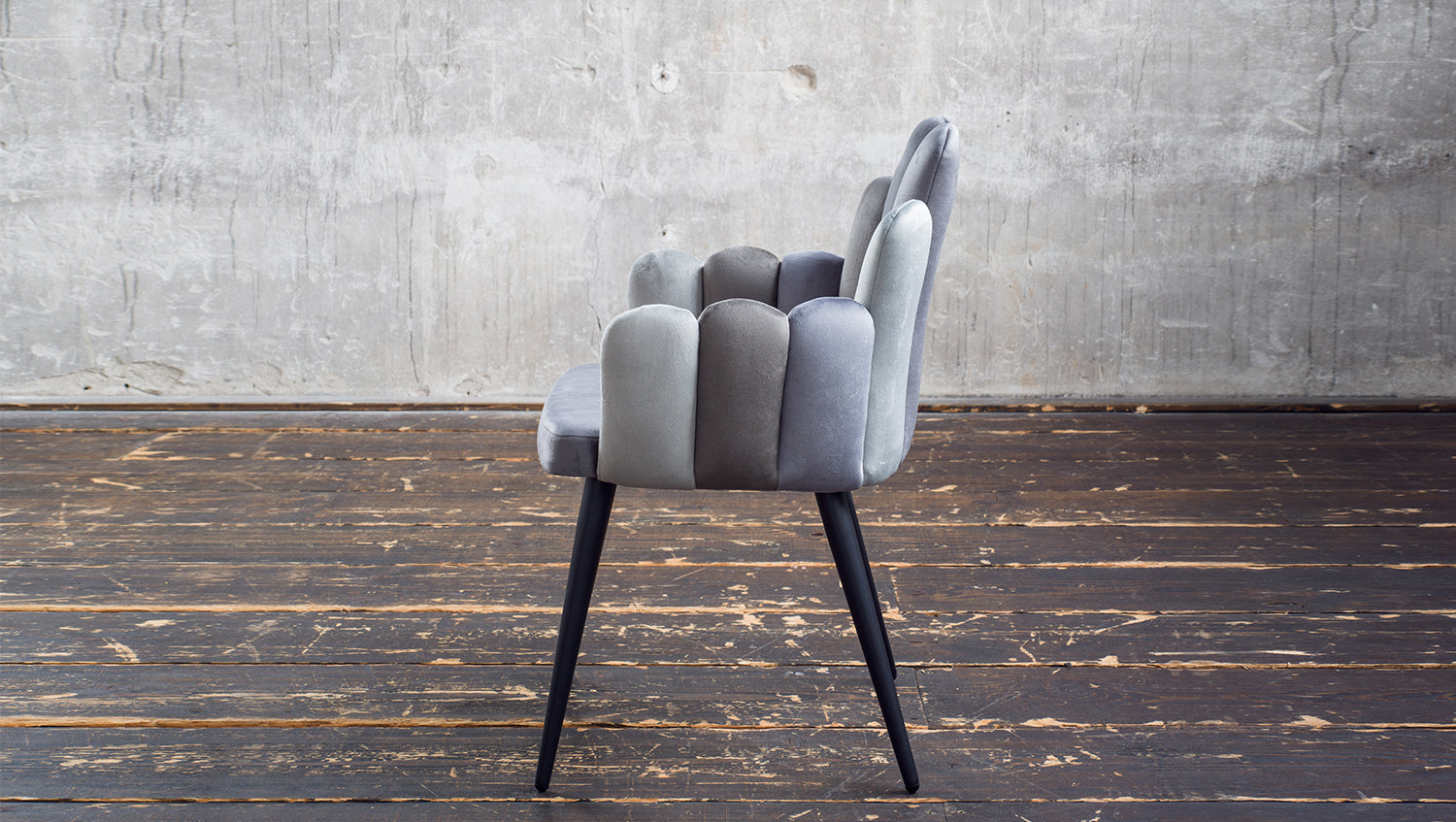 La silla FREJA de KAWOLA combina un agradable confort de asiento y un moderno diseño de salón. Aquí podrá reclinarse cómodamente y cenar con estilo. La tela de tapizado de terciopelo tiene un acabado de alta calidad y el elaborado diseño del respaldo en diferentes colores confiere a la silla un aspecto especial. Ya sea en el despacho o en el comedor, la silla FREJA se adapta a prácticamente cualquier espacio gracias a su moderno diseño.