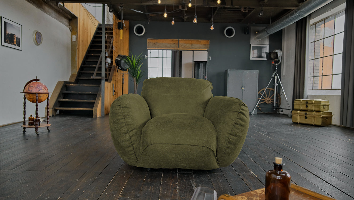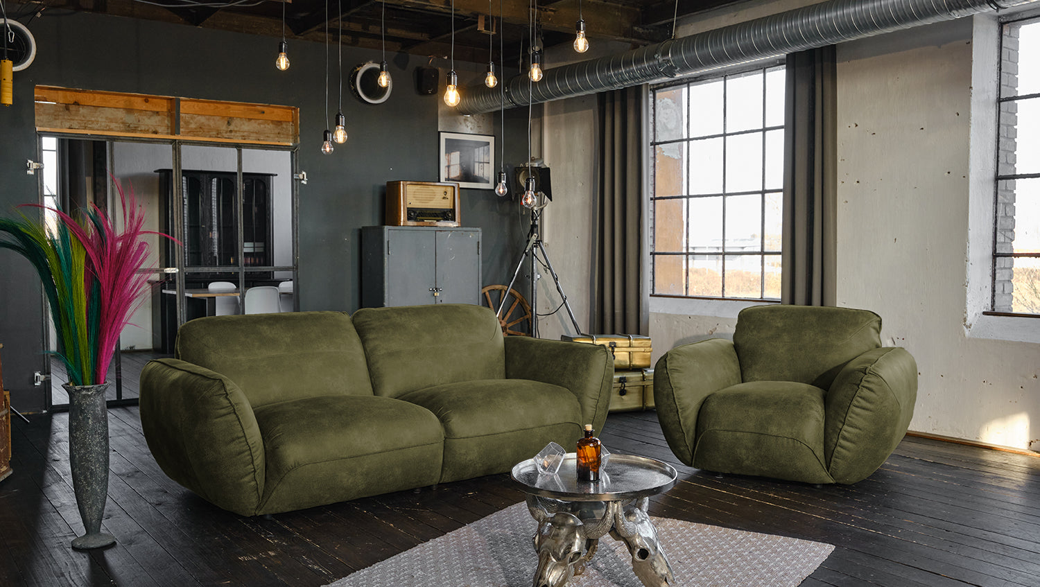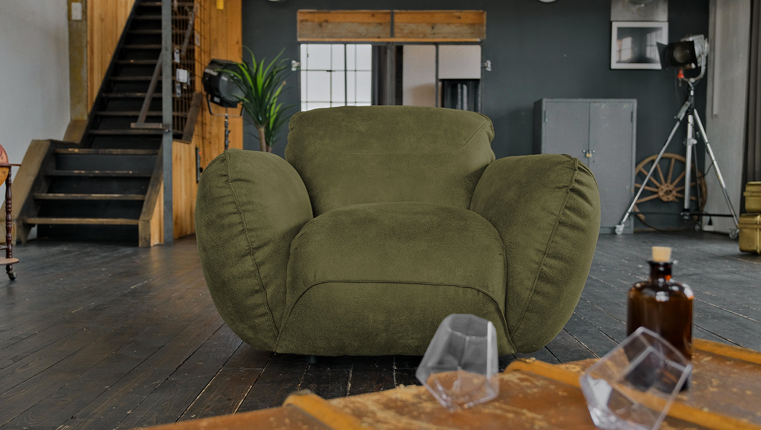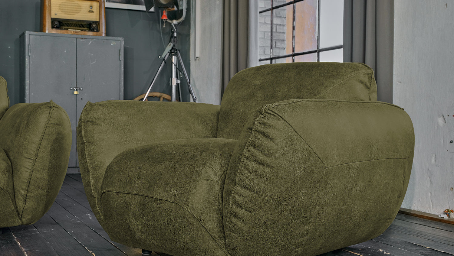 Sillón KAWOLA DAVITO de piel sintética con aspecto vintage verde oliva