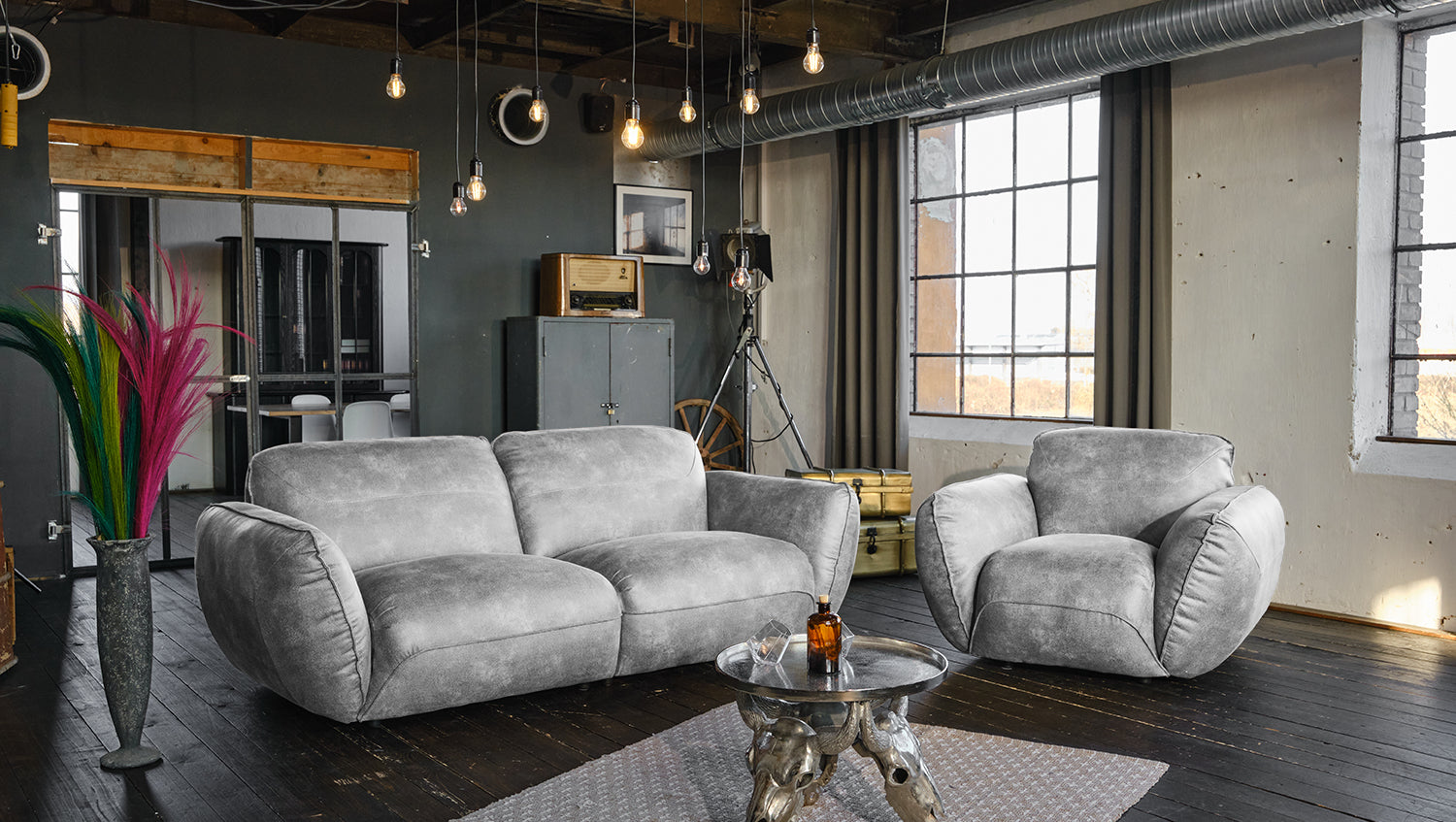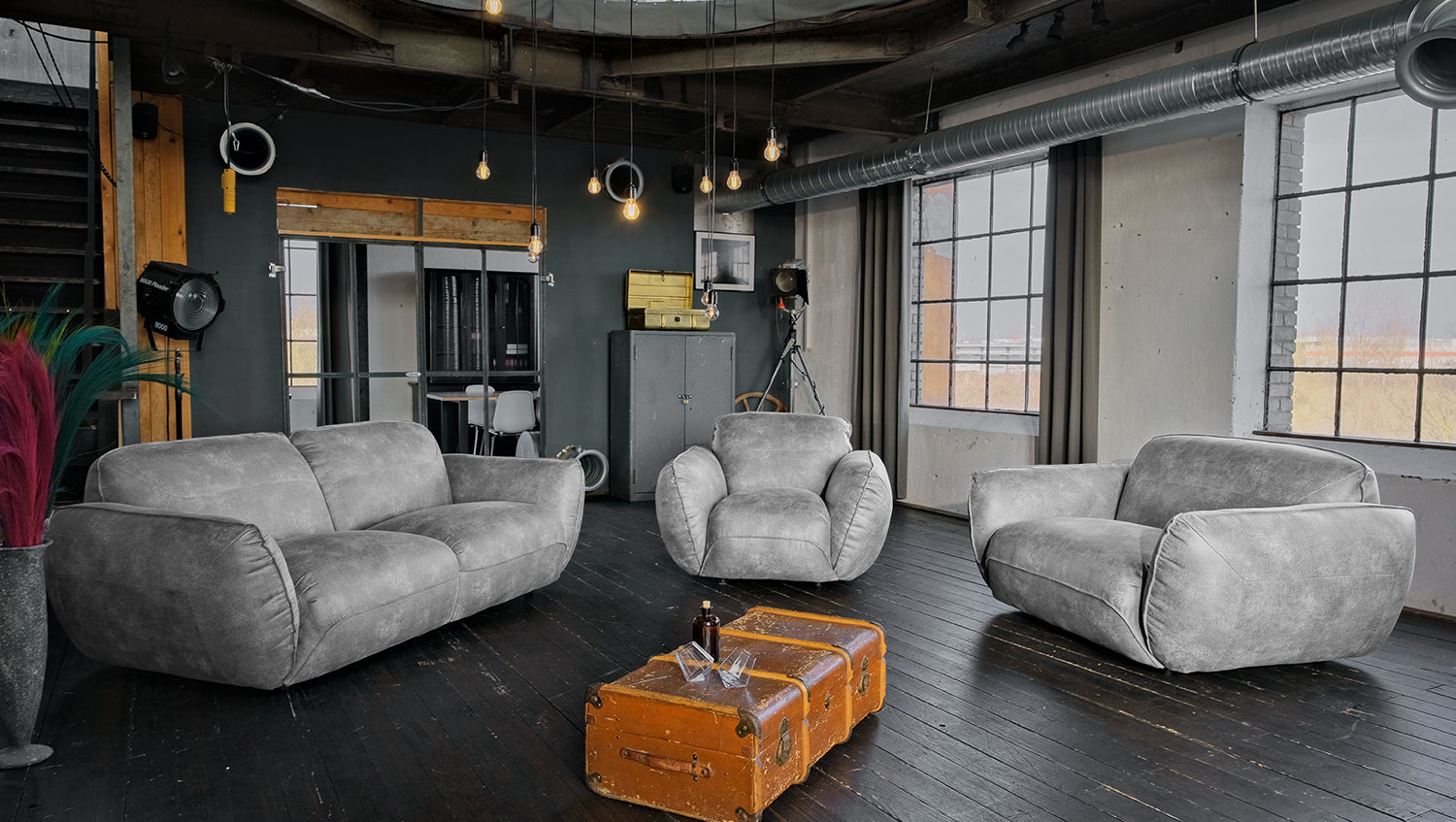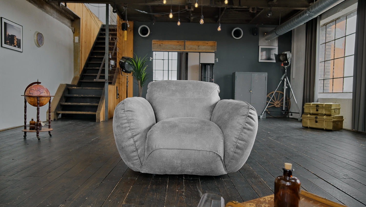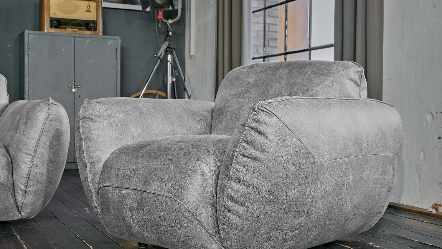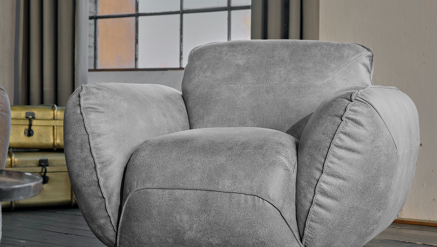 Sillón KAWOLA DAVITO con símil piel de aspecto vintage gris