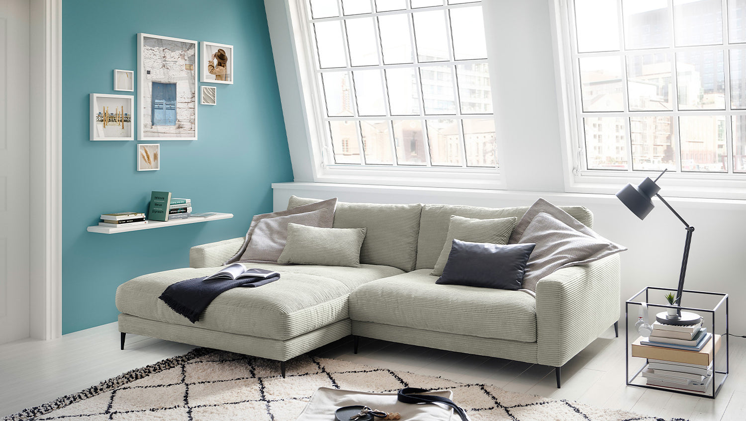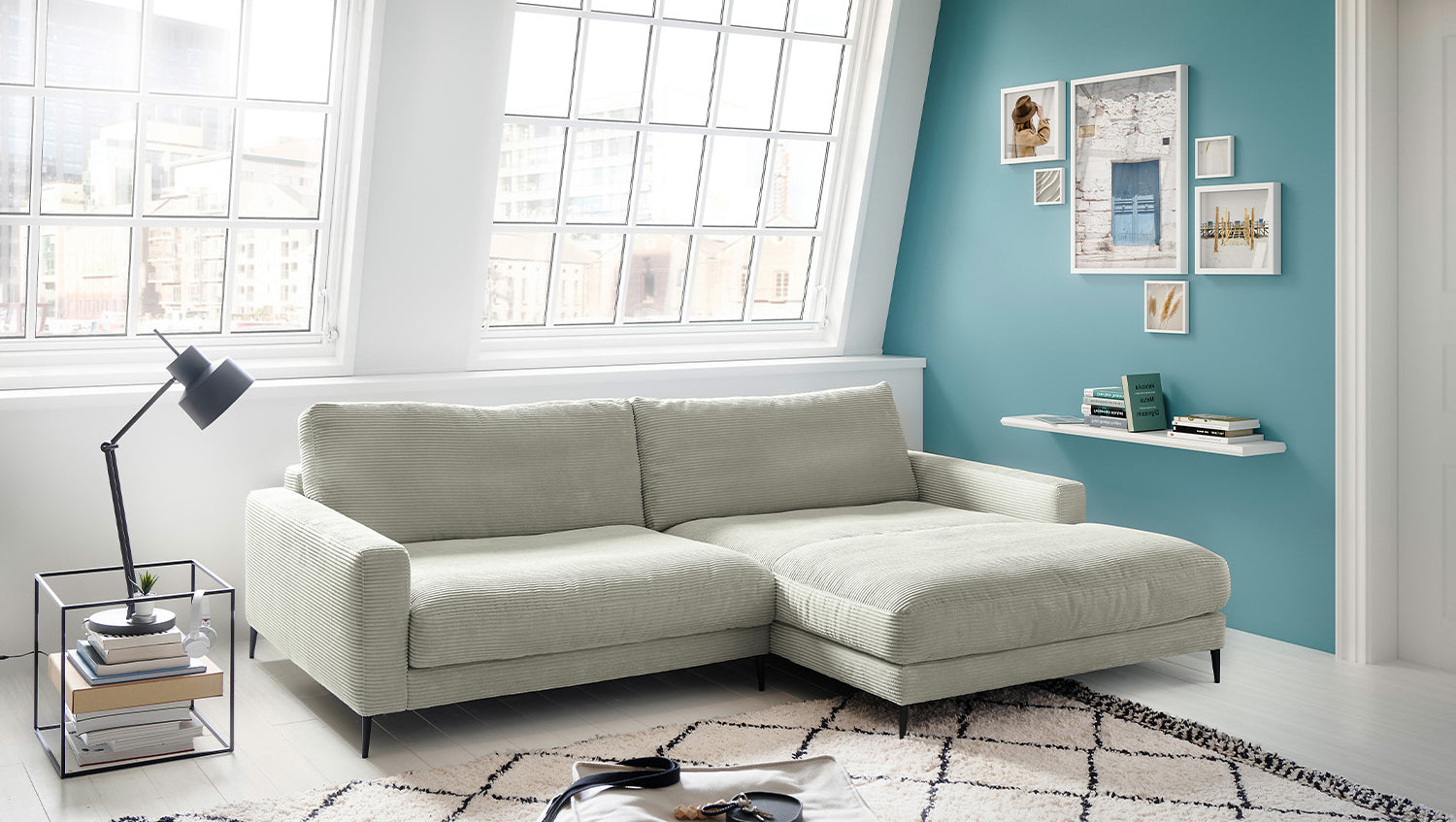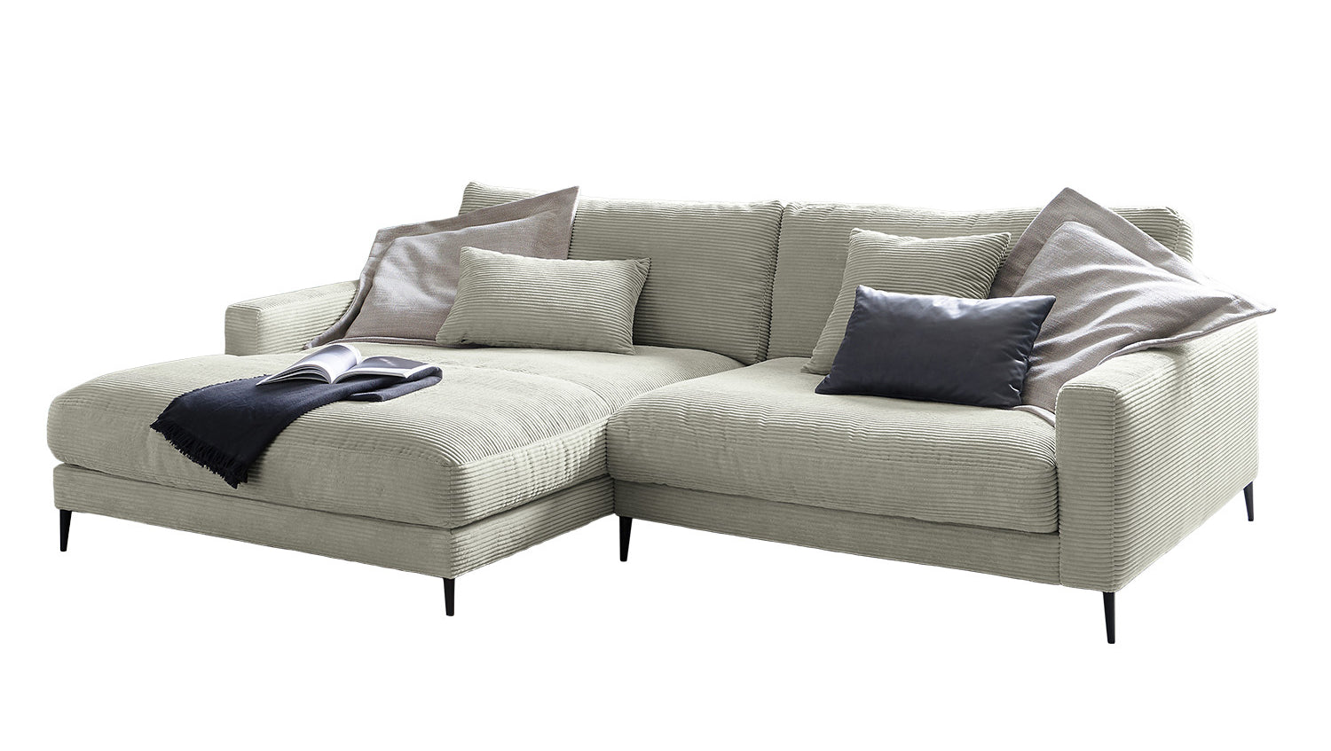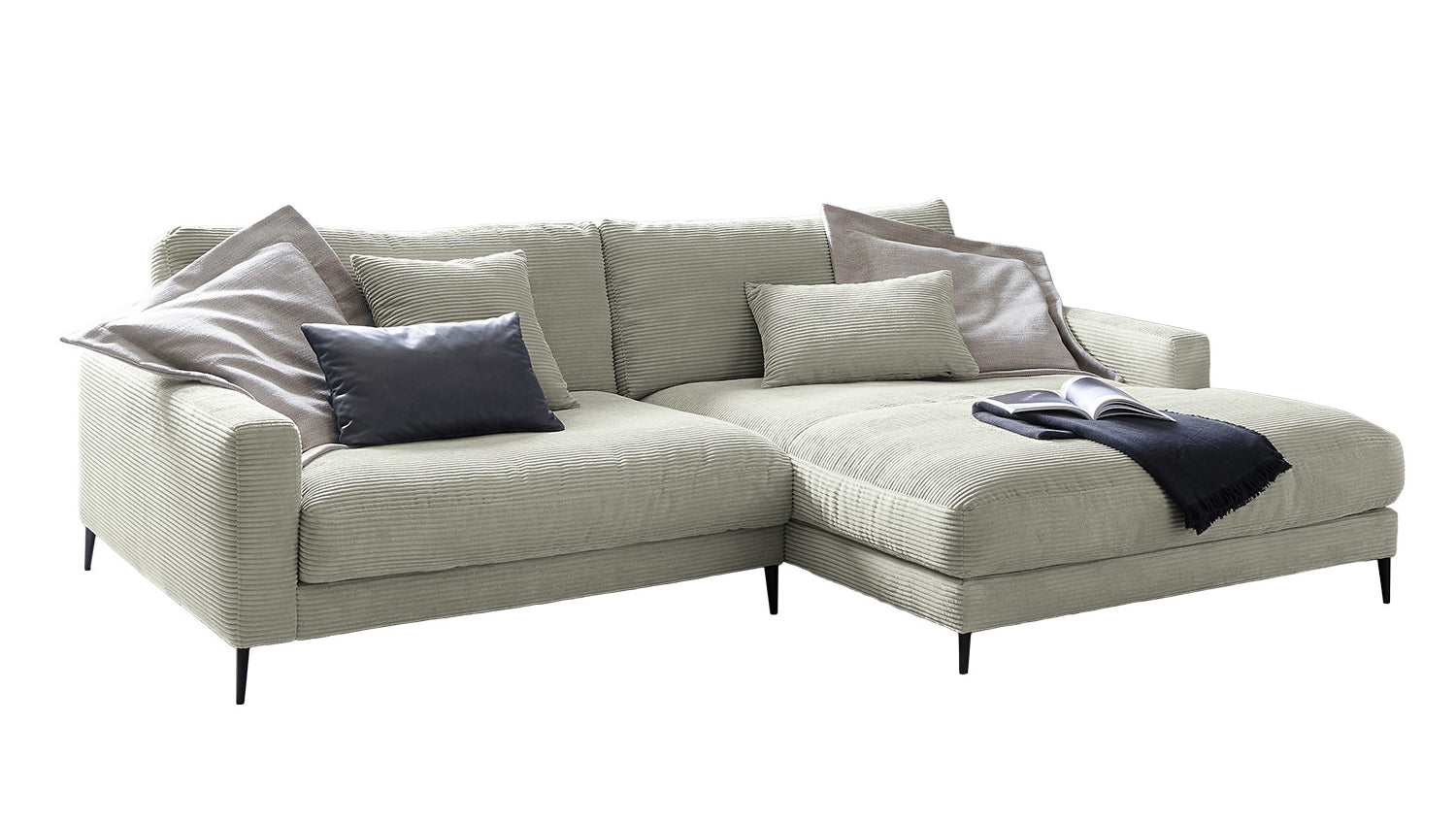 El sofá esquinero KAWOLA CARA combina el diseño clásico con la practicidad moderna y se integra a la perfección en cualquier interior. Sus formas suaves y el moderno revestimiento de tela Pana confieren al sofá una elegancia atemporal. La tapicería se amolda a la forma del cuerpo; las impresiones del asiento y las ondulaciones de la tapicería son típicas del producto. El asiento consta de una base de muelles con muelles ondulados de acero de elasticidad permanente y una funda superior, así como cojines de asiento sueltos de espuma de poliuretano. El asiento y el respaldo están tapizados con un relleno de alta calidad que contiene una mezcla de plumas. Para evitar que el material de relleno se comprima, los Cojines respaldo deben sacudirse después de su uso. Sea cual sea la ocasión, en el sofá CARA todos encontrarán un lugar para relajarse.